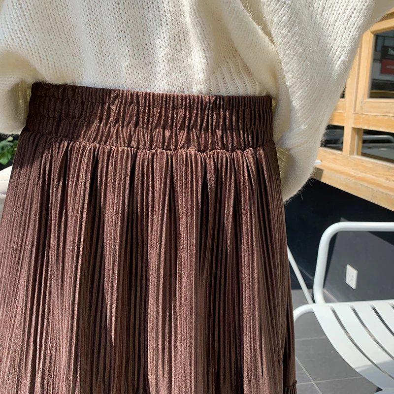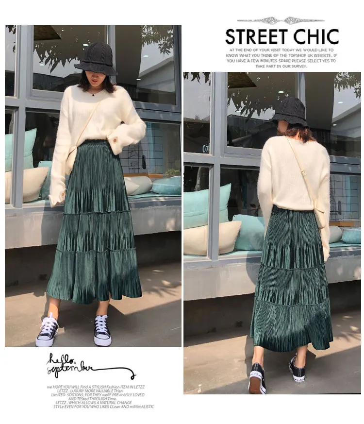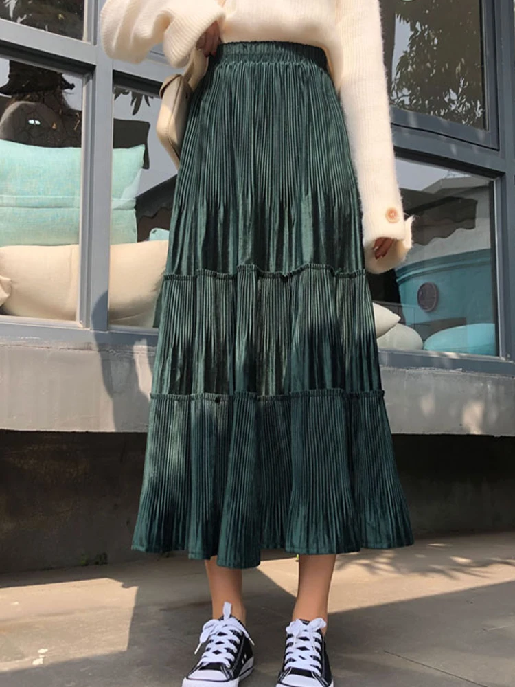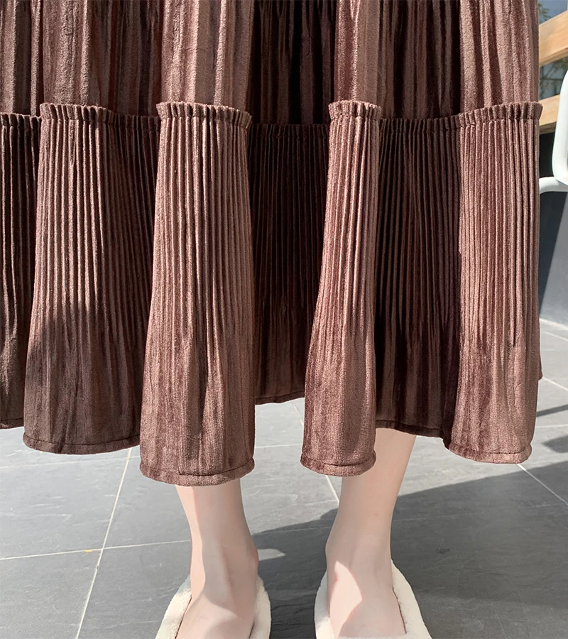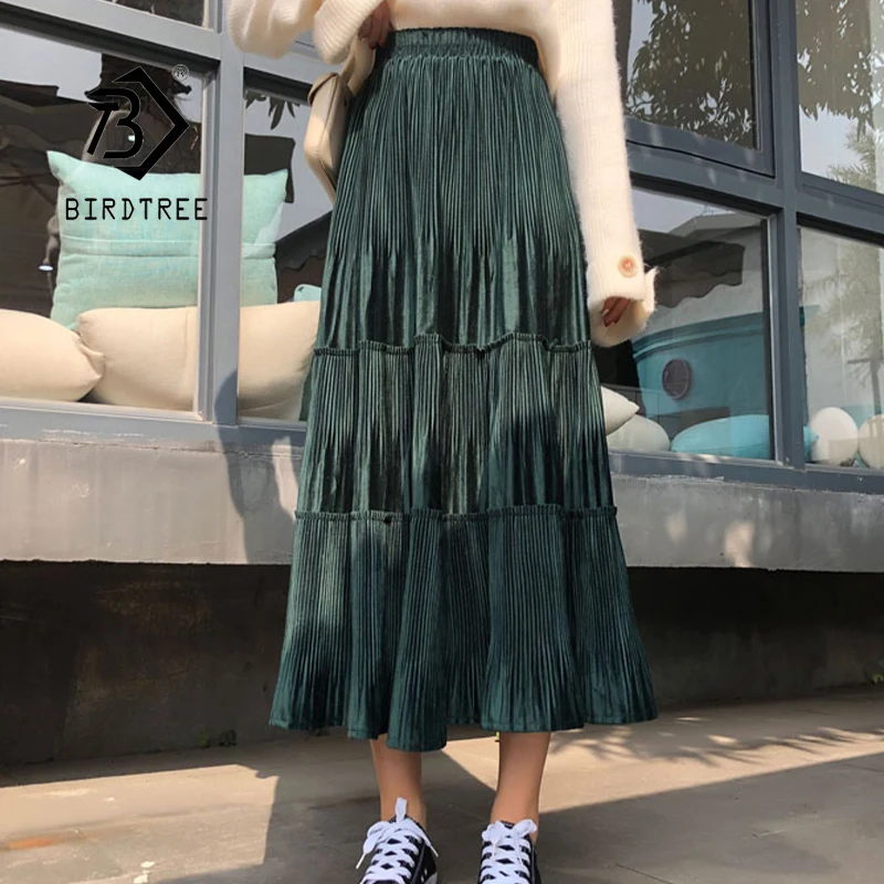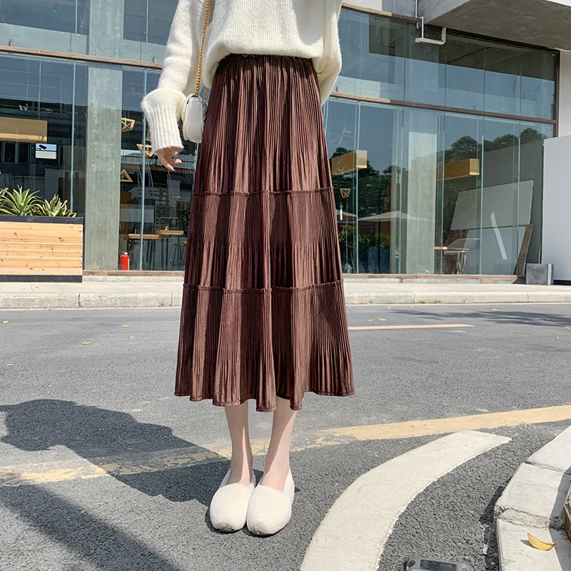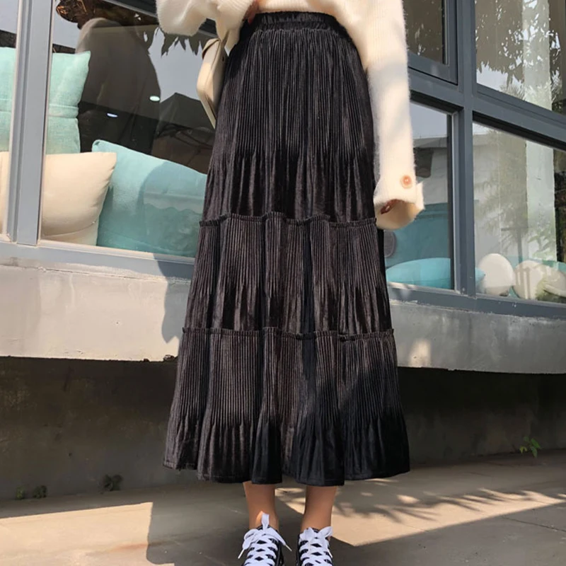 2021 весна и осень новая высокая Талия Макси Юбки Женская длинная бархатная плиссированная юбка Ретро мода А-силуэт торт низ B07003R