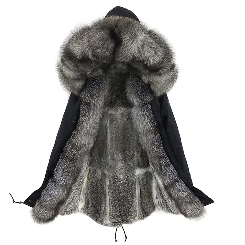 Парка мужская зимняя, с шуба из натурального Лисьего меха натуральным мехом, с капюшоном, подкладка из натурального кроличьего меха
