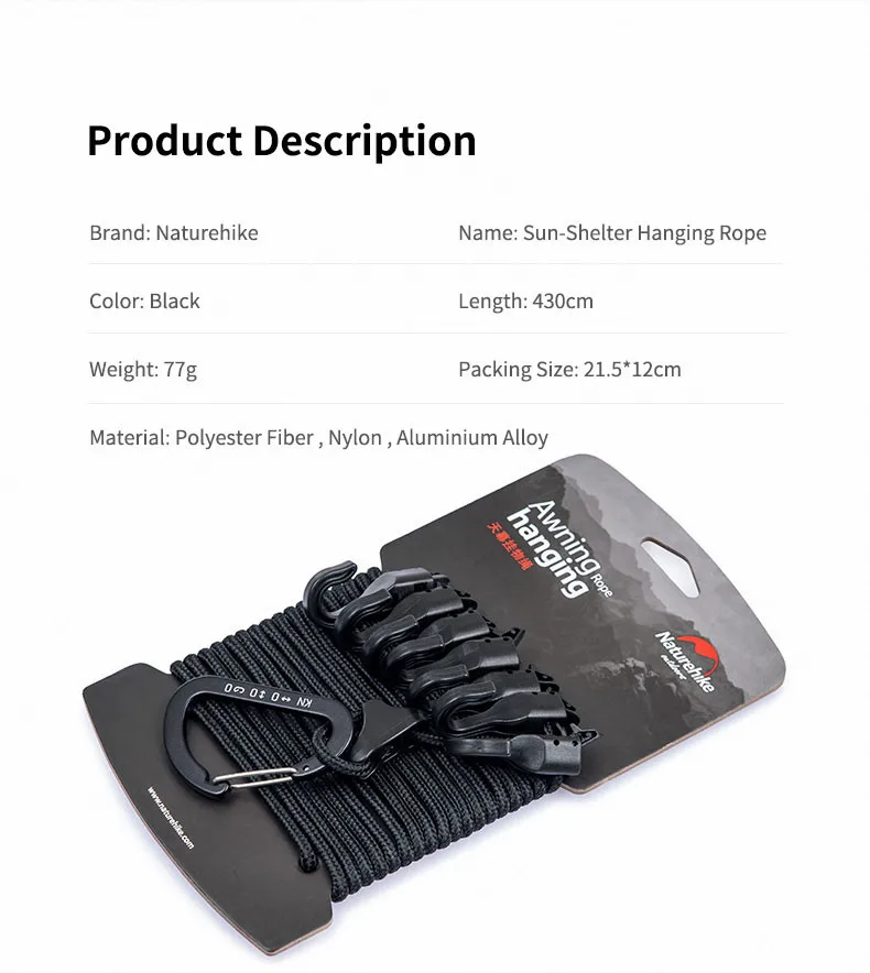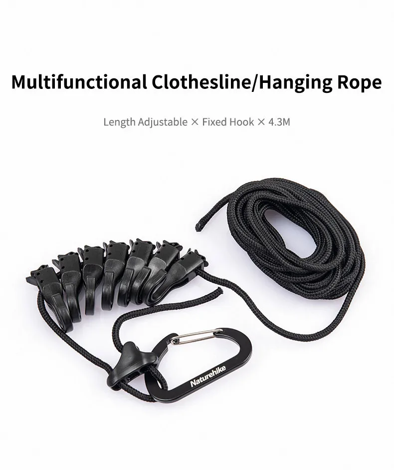 Подвесная веревка Naturehike для кемпинга, многофункциональная Регулируемая Веревка для белья, нескользящая веревка для кемпинга, 4,3 м