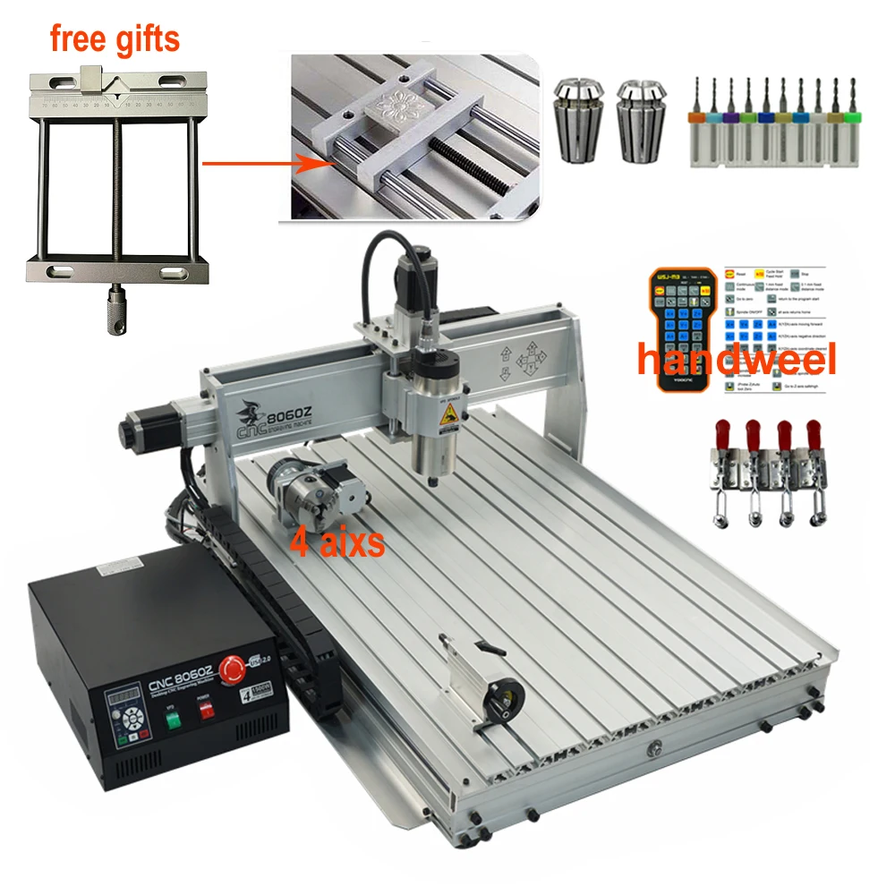 Фрезерный станок с ЧПУ 8060, кВт, кВт, шпиндель, гравировальный станок, 4-осевой USB-фрезерный станок 3 ER11 ER16, цанга, алюминиевый гравировальный станок, режущий станок