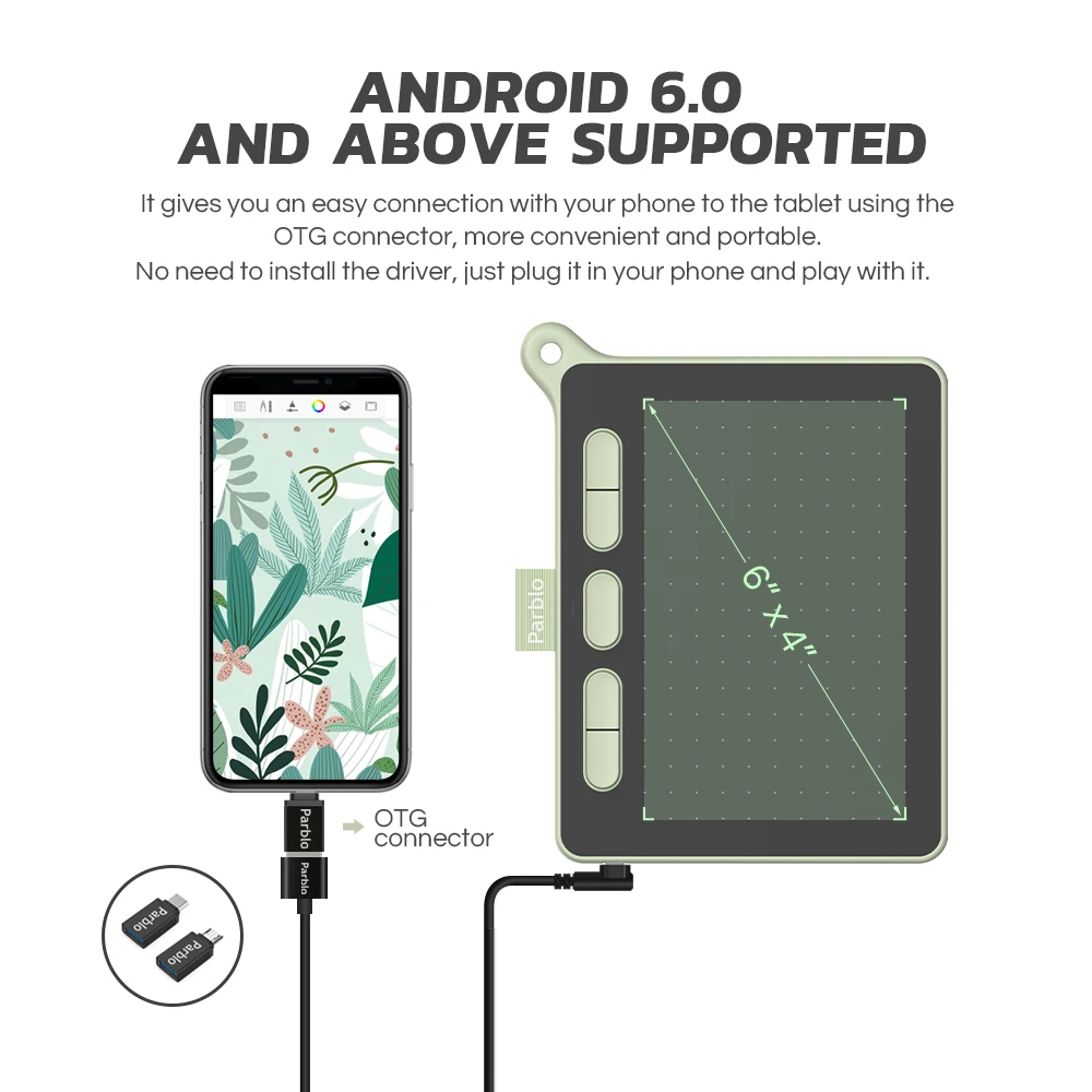 Цифровые планшеты Parblo Ninos S, графический планшет для рисования 6 х4 дюймов, USB для подписи, планшет с поддержкой Android для игры в OSU, онлайн-обучение