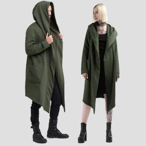 Кардиган с капюшоном для мужчин и женщин, плащ-накидка, длинная куртка, Тренч, верхняя одежда, однотонный длинный кардиган с капюшоном