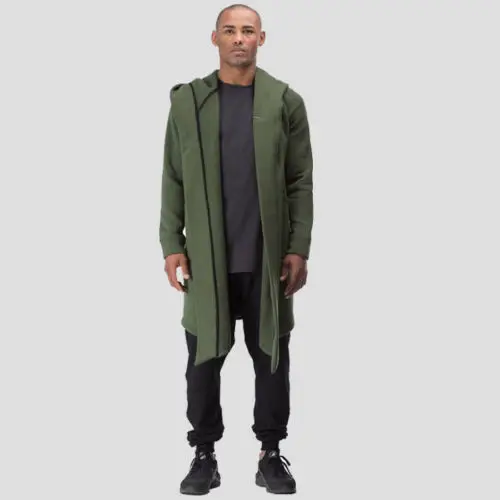 Длинный модный мужской кардиган с капюшоном, куртка с длинным рукав...