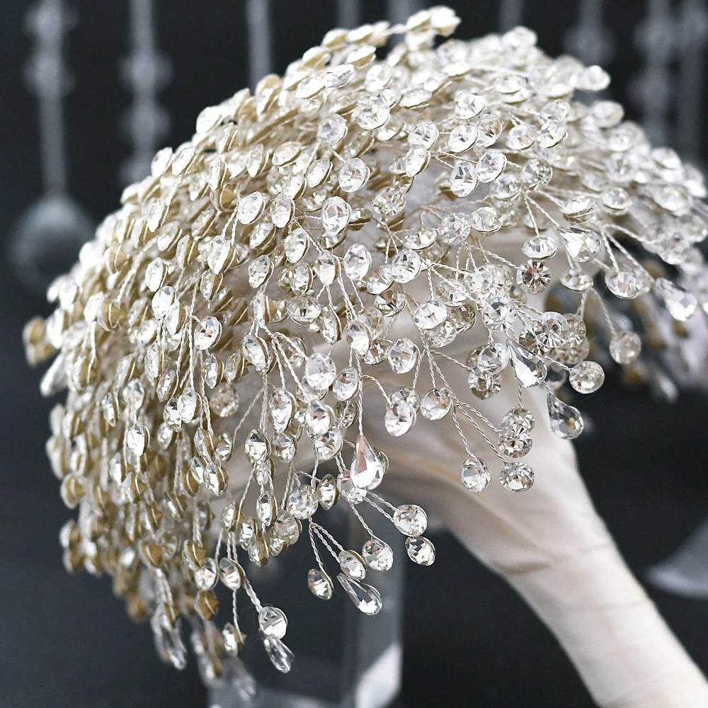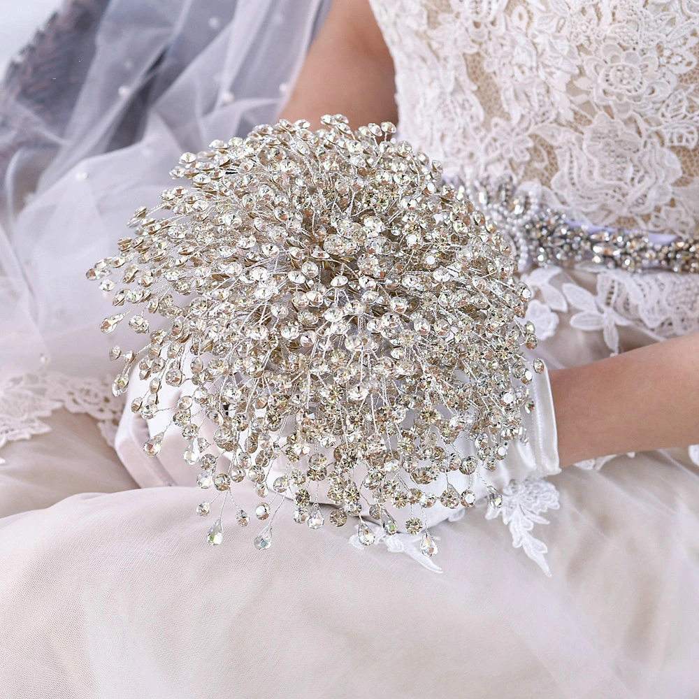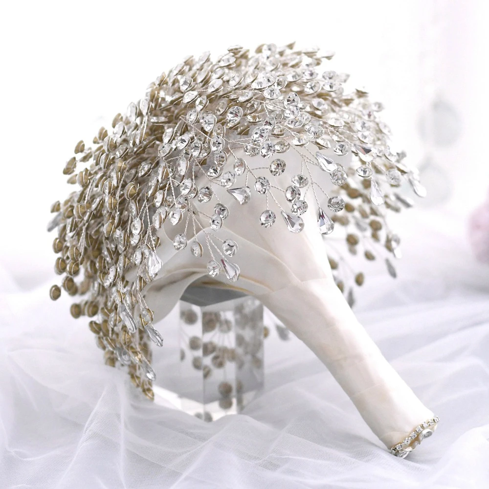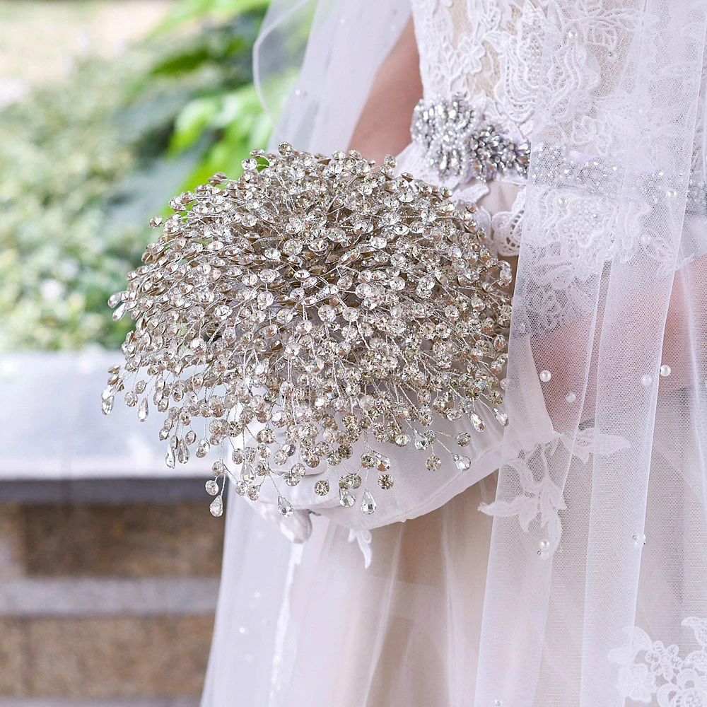 Блестящие аксессуары для невесты, цветочный букет, серебряная брошь...