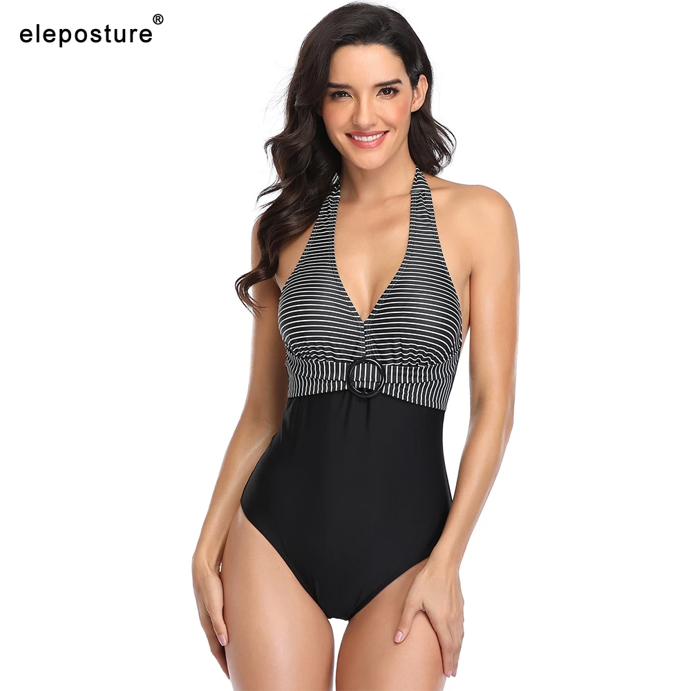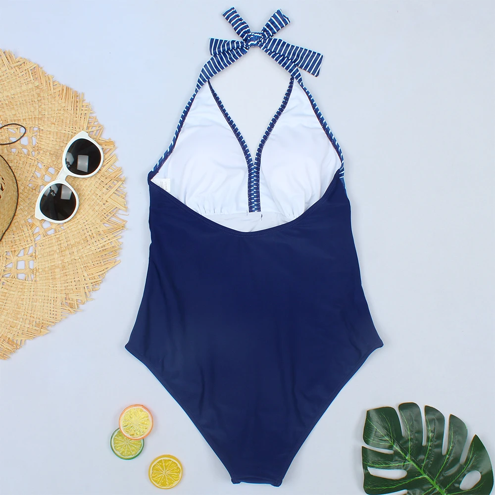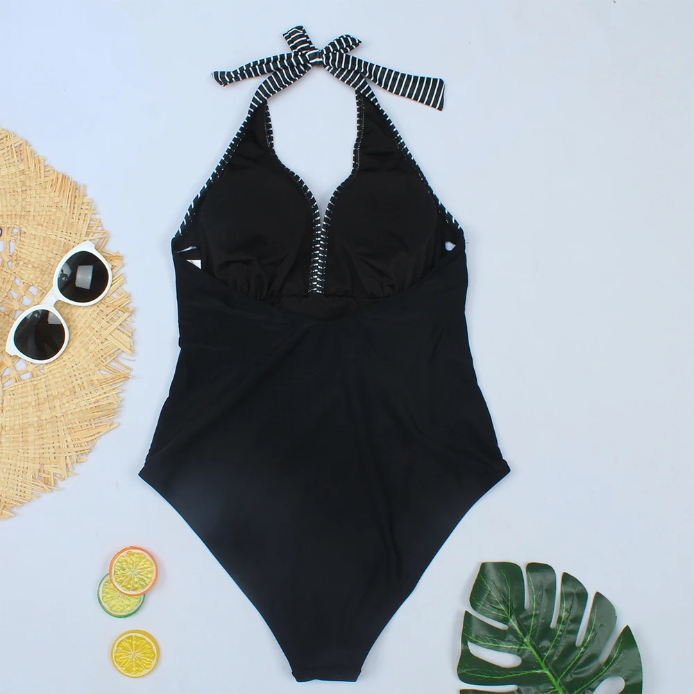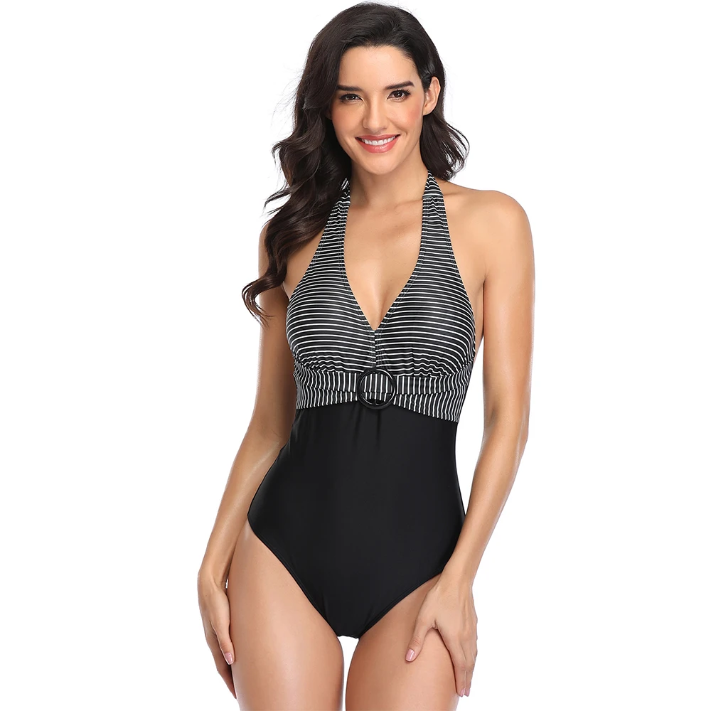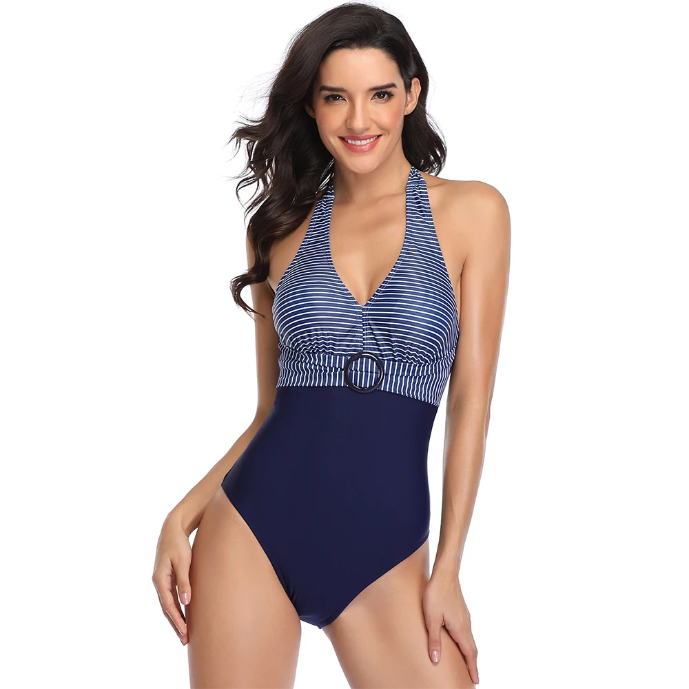 2022 сексуальный цельный купальник с лямкой через шею, женский купальник в полоску, лоскутный купальник, винтажный Ретро купальник, летняя пляжная одежда