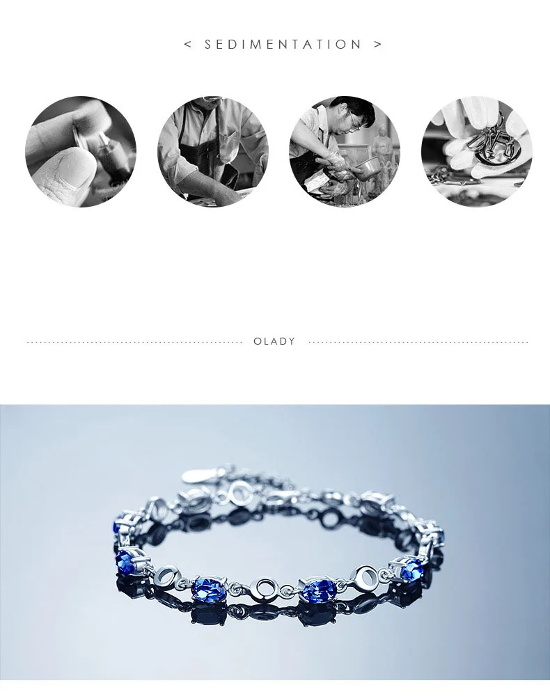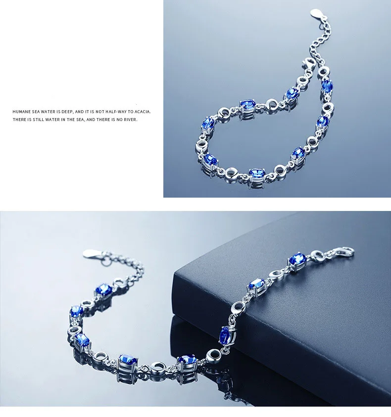 Женский браслет из серебра 925 пробы, с темно-синим сапфиром