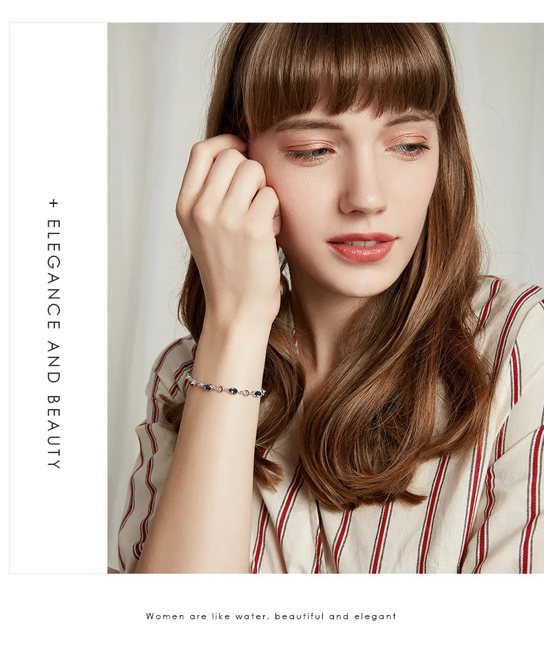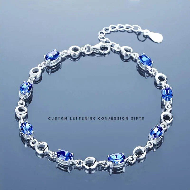 Женский браслет с драгоценными камнями, из серебра 925 пробы с сини...
