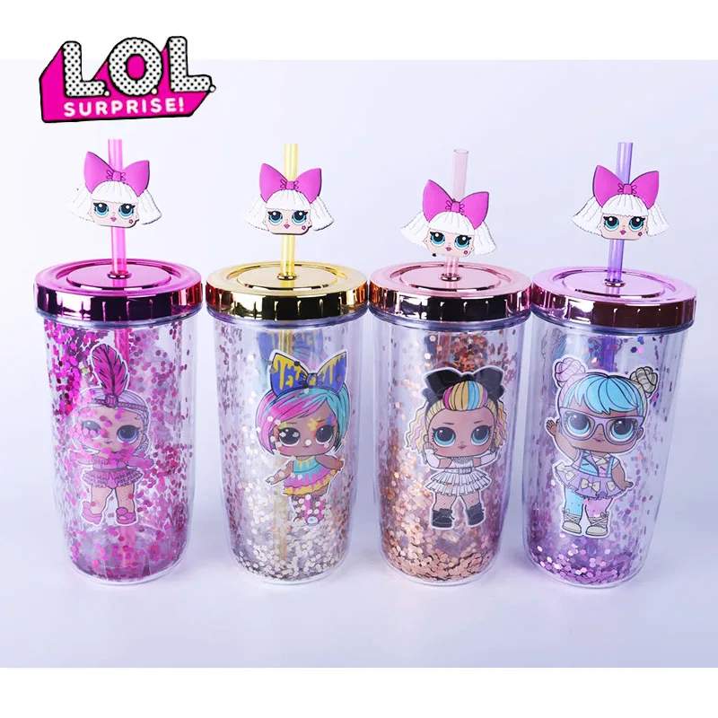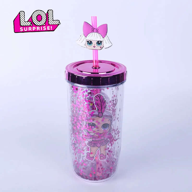 Кукольная кружка LOL Surprise с блестками, однотонная двойная пластиковая чашка для воды, чайник с мультипликационным рисунком аниме девочки, милая бутылка в подарок 300-400 мл