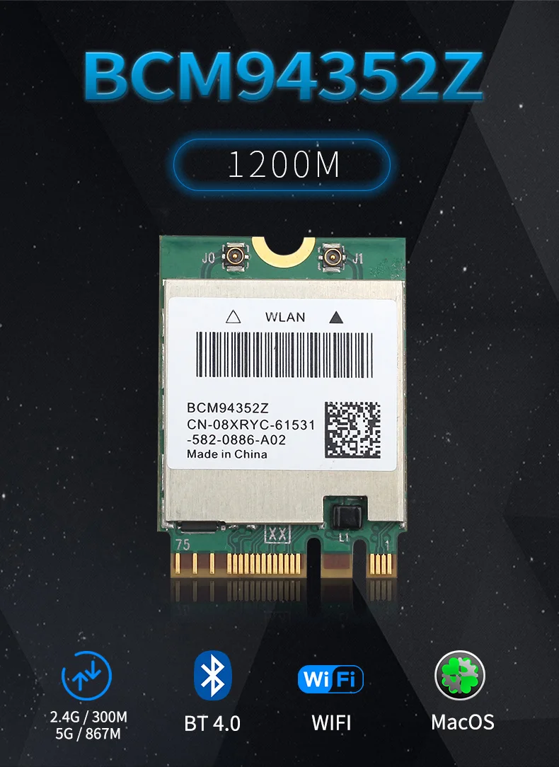 Hackintosh MacOS BCM94352Z DW1560 беспроводная Wifi карта 867 Мбитс Bluetooth 4,0 двухдиапазонный 2,4G5G NGFF M.2 Wifi Wlan адаптер 802.11ac