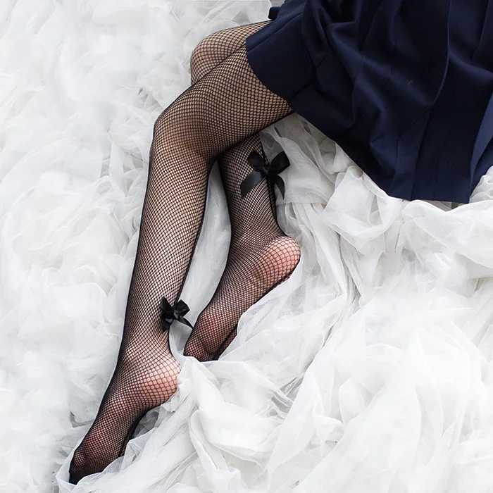 Чулки женские сексуальные ажурные, чулки Лолита высокие чулки с бантом сзади с вертикальным бантом сетчатые чулки сексуальные