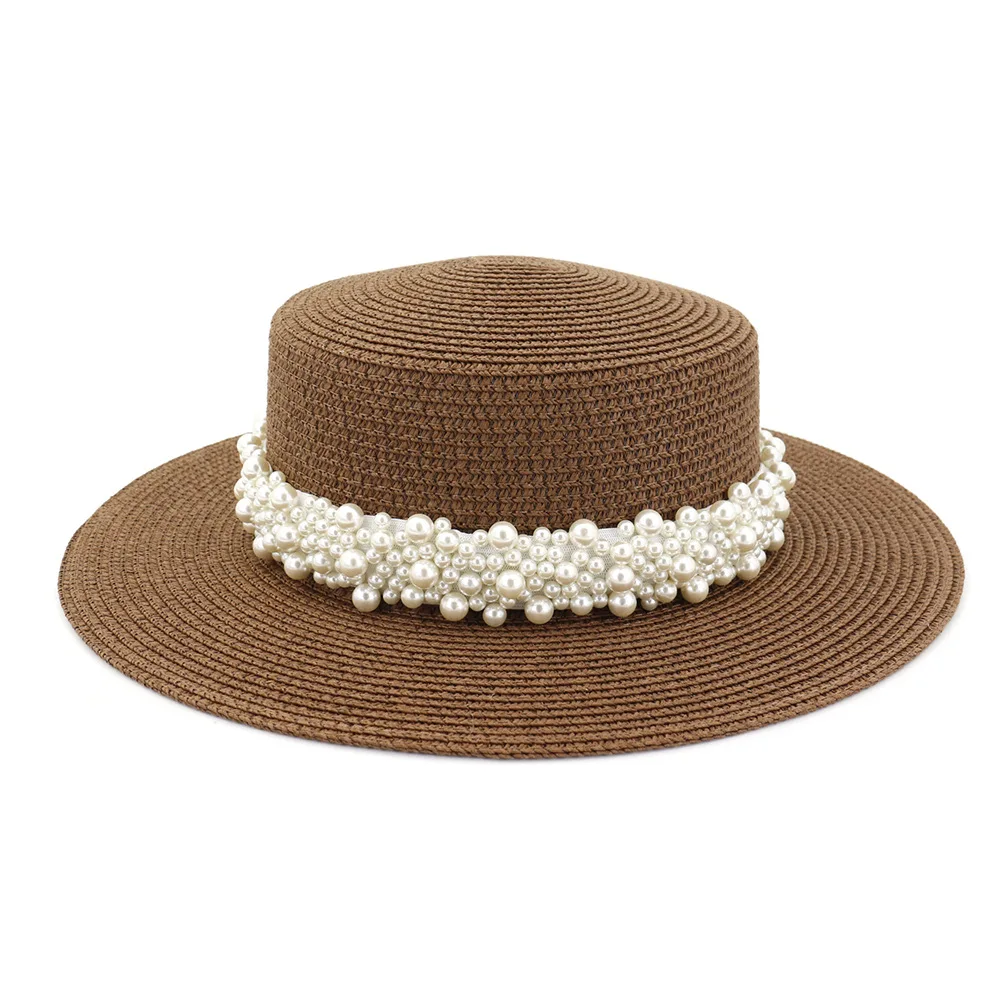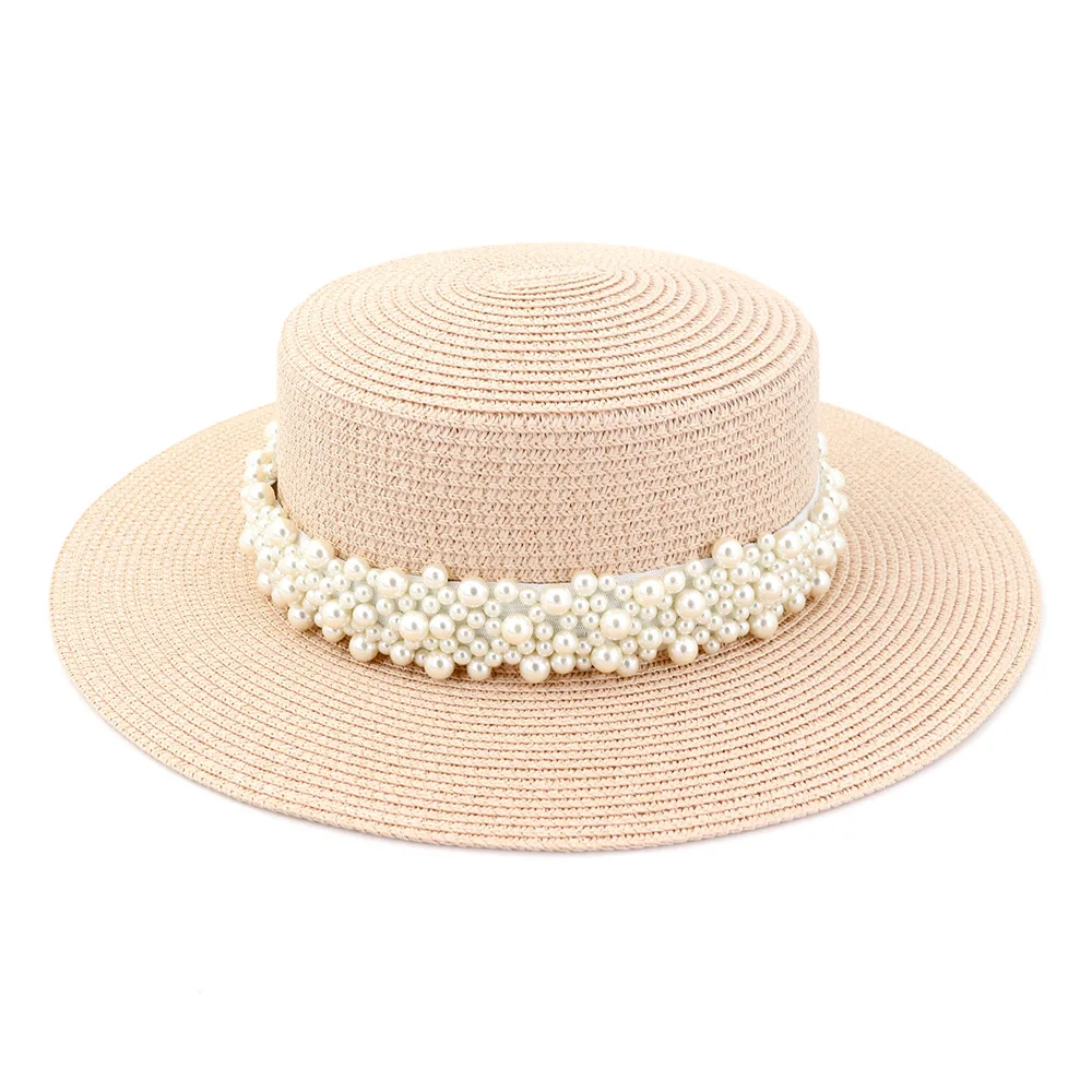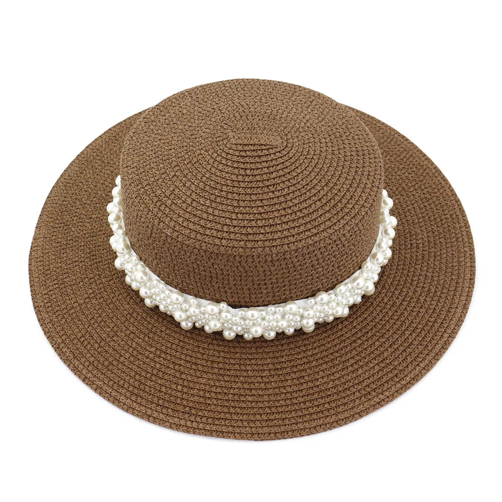 Новая летняя винтажная женская Соломенная фетровая шляпа в стиле джаз, Женская Повседневная шляпа с широкими полями, Панама, шляпа от солнца с жемчужинами, аксессуары