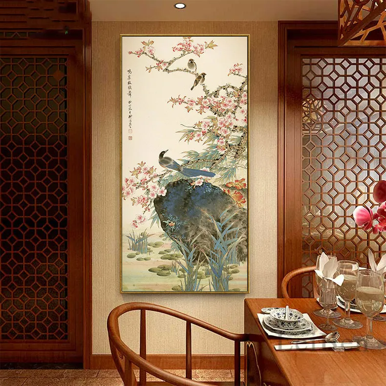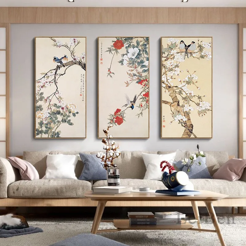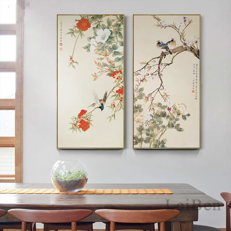 Картина в китайском классическом стиле с цветами и птицами, постеры на холсте
