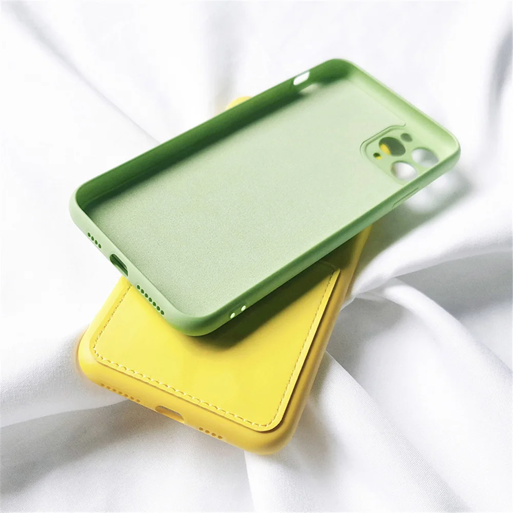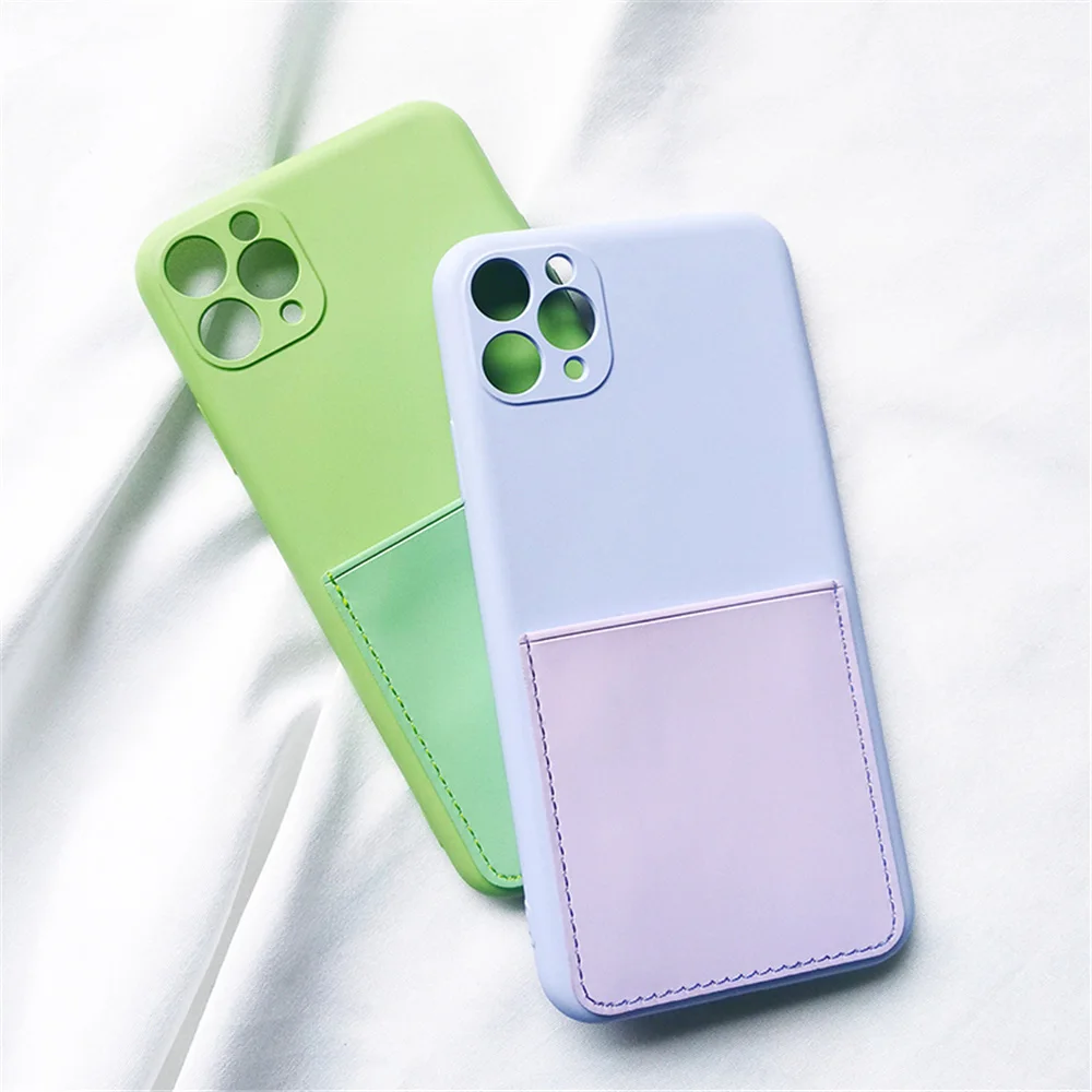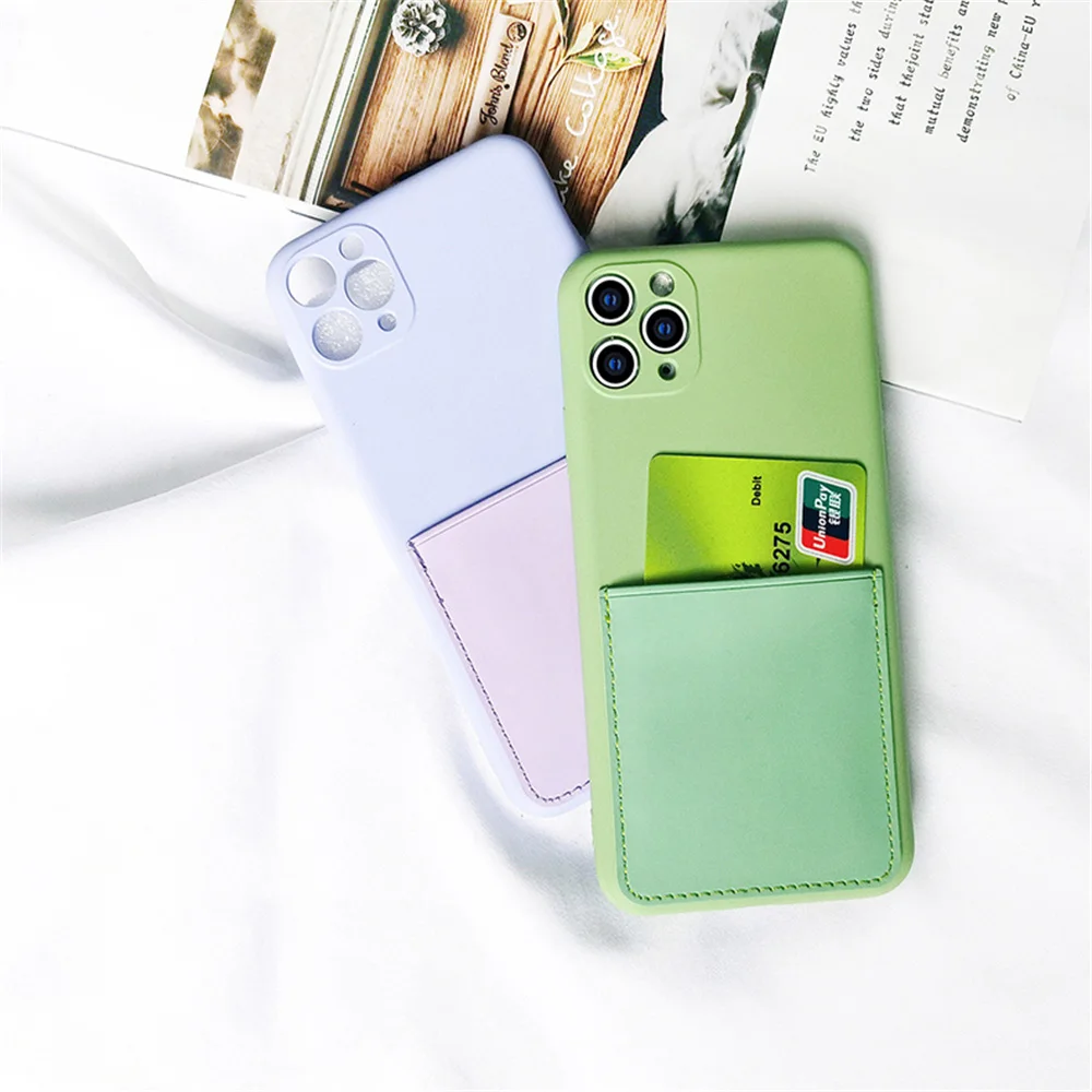 Жидкий силиконовый Карманный чехол для телефона с отделением для карт для iPhone 12 Mini 11 Pro Max XS Max XR X 8 7, Мягкий защитный чехол карамельных цветов