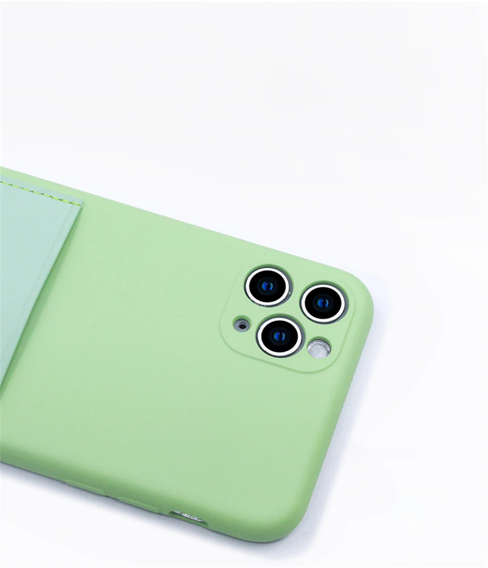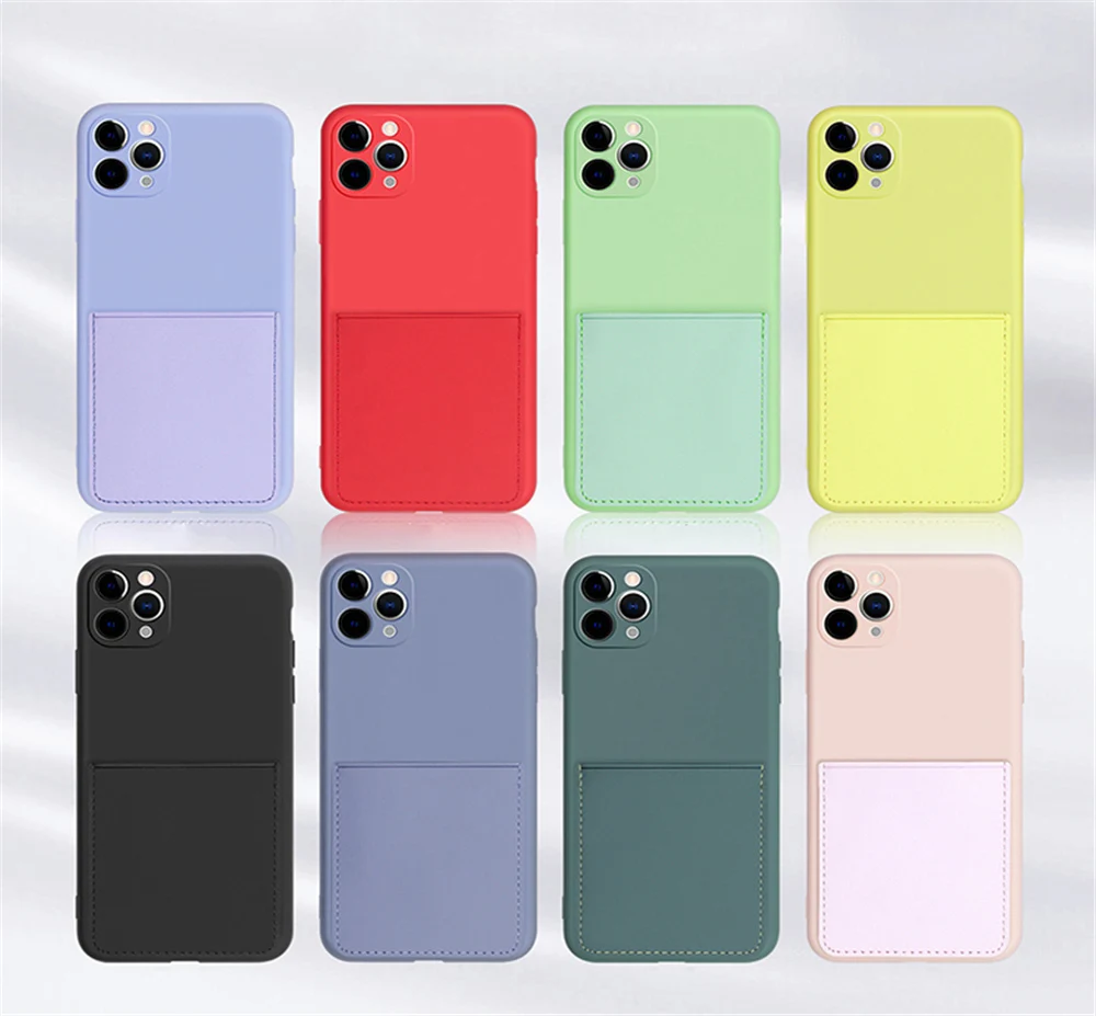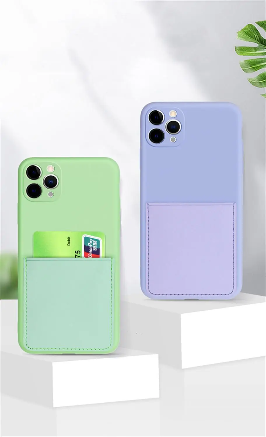 Жидкий силиконовый Карманный чехол для телефона с отделением для карт для iPhone 12 Mini 11 Pro Max XS Max XR X 8 7, Мягкий защитный чехол карамельных цветов