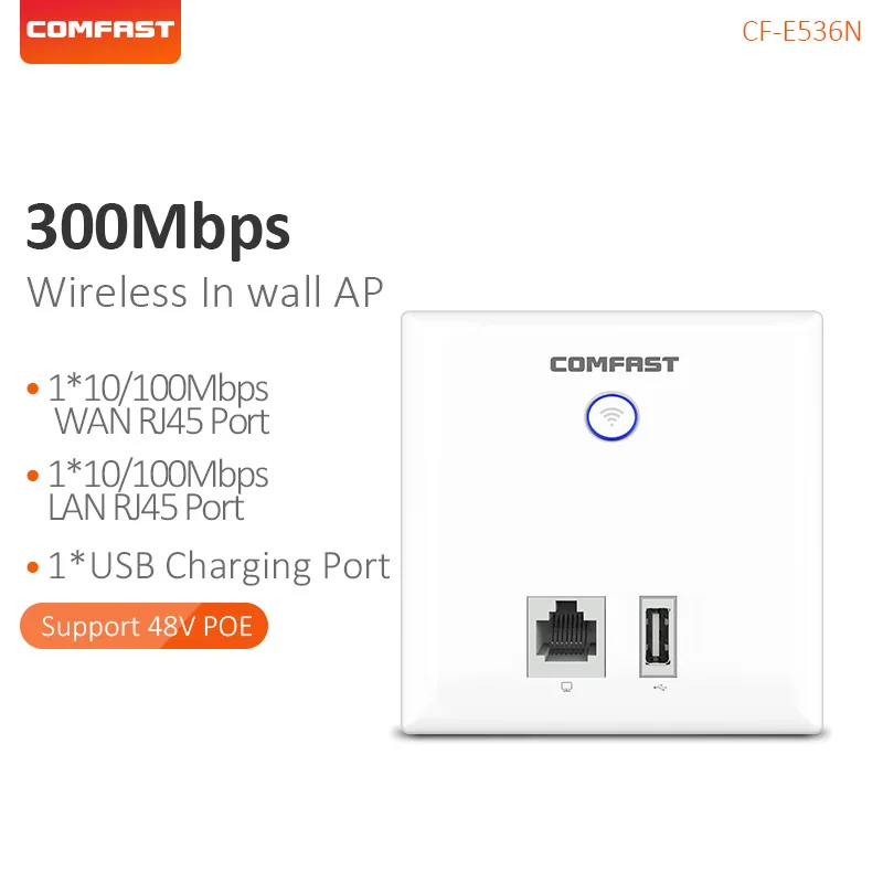 Wi-Fi в стене точка доступа AP 2,4G беспроводной 300 м RJ45 сетевой порт USB2.0 Wi-Fi панель зарядки 48 в POE COMFAST CF-E536N