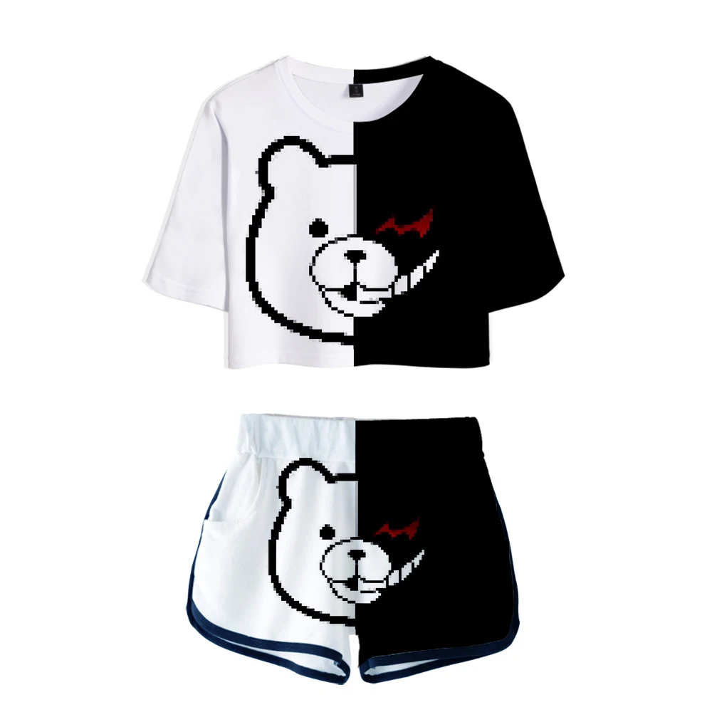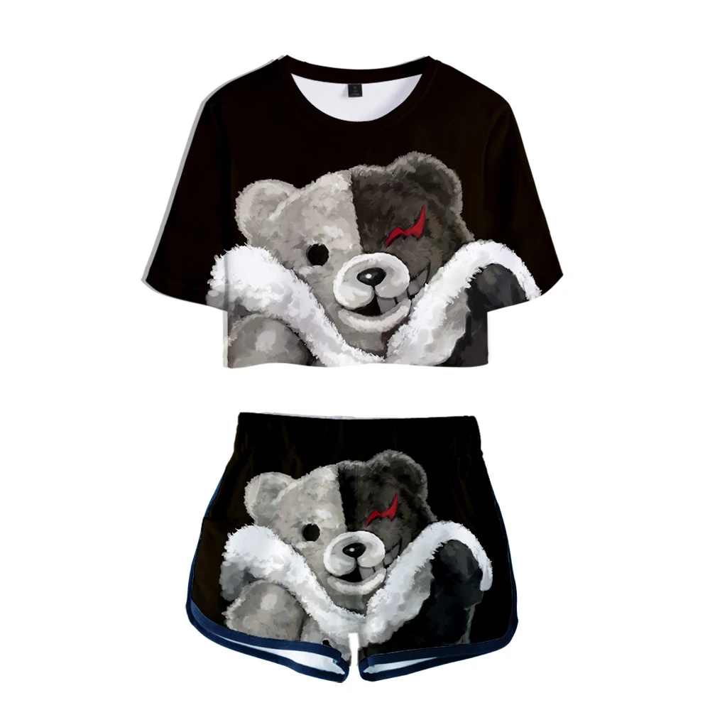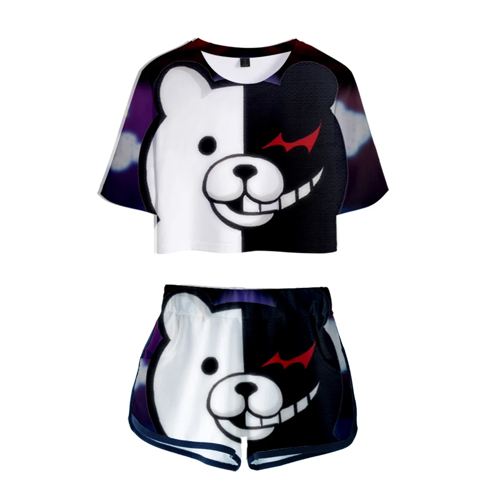 Костюм-двойка женский в стиле аниме Danganronpa, футболка, шорты, 3D, уличный спортивный костюм, косплей Монокума