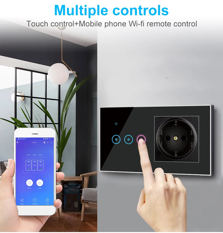 Размер продукта: 146*86*35 ммМатериал: АБС + закаленное стеклоОсобенности: поддержка сенсорного управления/управление через приложение/Голосовое управлениеПоддержка: приложение Tuya Smart LifeФункция: общий доступ членов семьи, расписание/таймер/общий доступРаботает с: Amazon Alexa,Google Home,Сертификация: CE, FCC, ROHSИсточник питания: 90-240 В переменного токаВыключатель питания: 10AРазъем питания: 16AWIFI: 802,11 b/g/n 2,4GБезопасность: WPA- PSK / WPA2-PSKГарантия: 1 годЦвет: белый/черный (принимаем OEM)