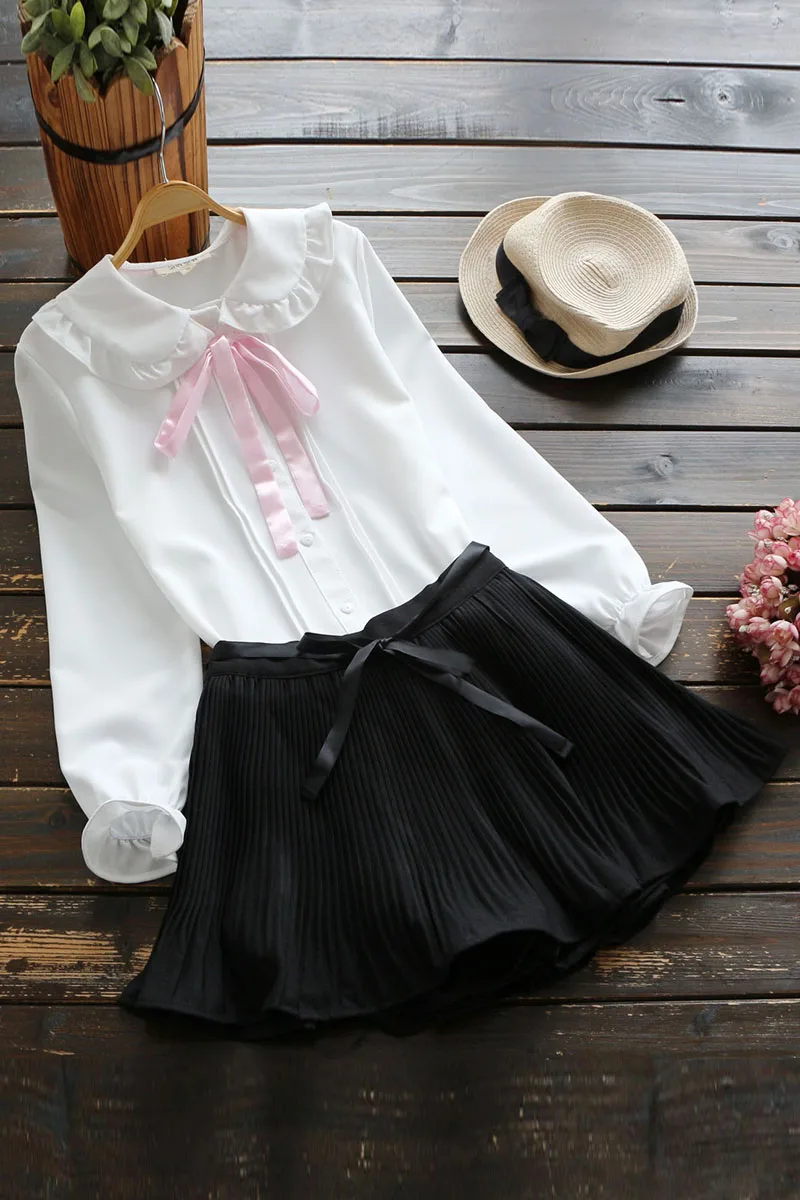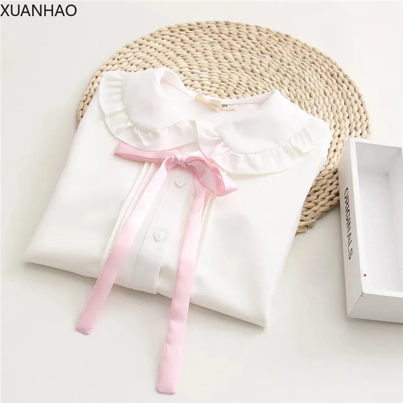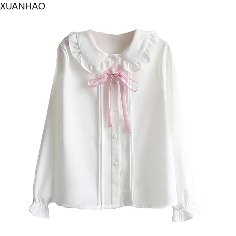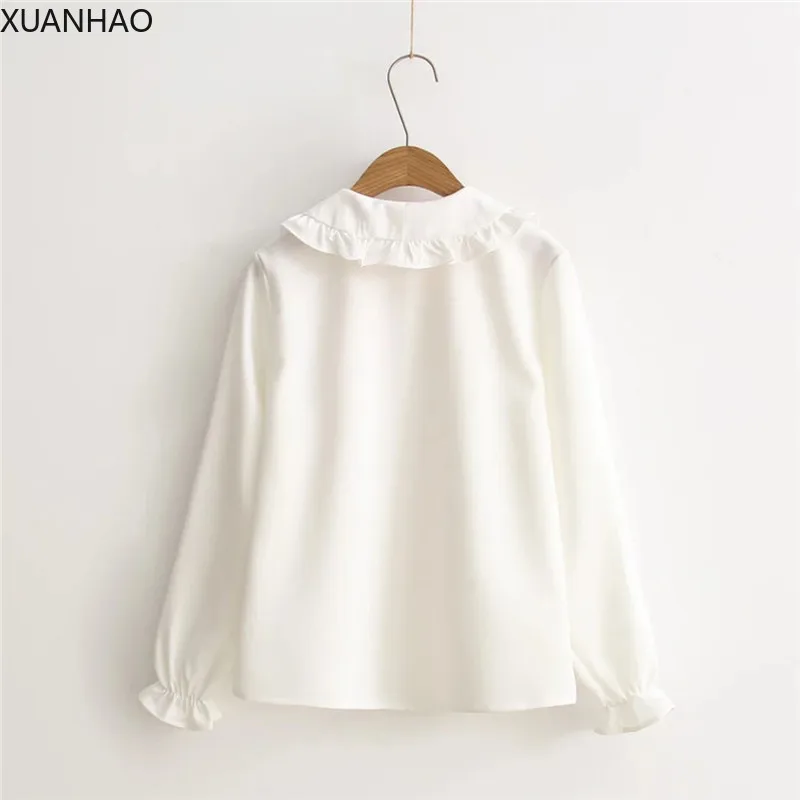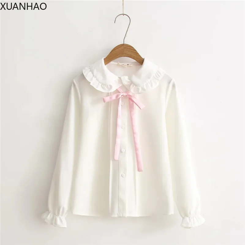 Женская шифоновая блузка XUANHAO, белая блузка с длинными рукавами и воротником Питера Пэна в стиле мори для девочек, школьная форма, топ на осень