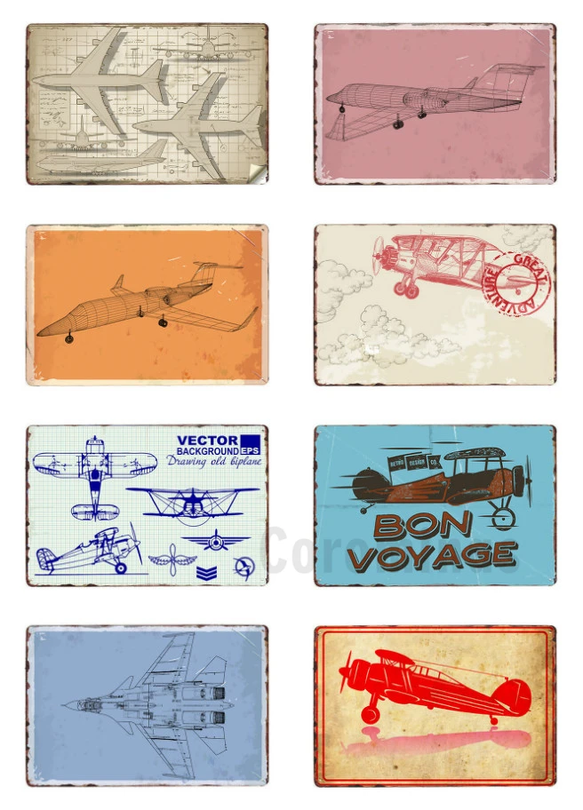 Самолёт схемы контур ретро металлические знаки американский самолет искусство стены Оловянная живопись паб клуб бар магазин домашний декор