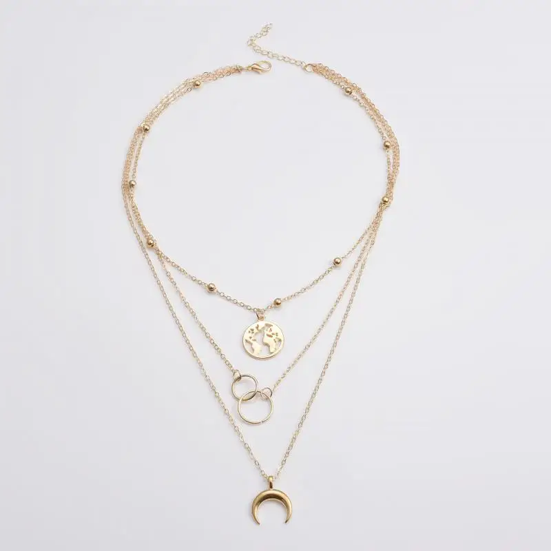 Женское многослойное ожерелье, многослойное ожерелье в богемном стиле с изображением карты и Луны, 2020
