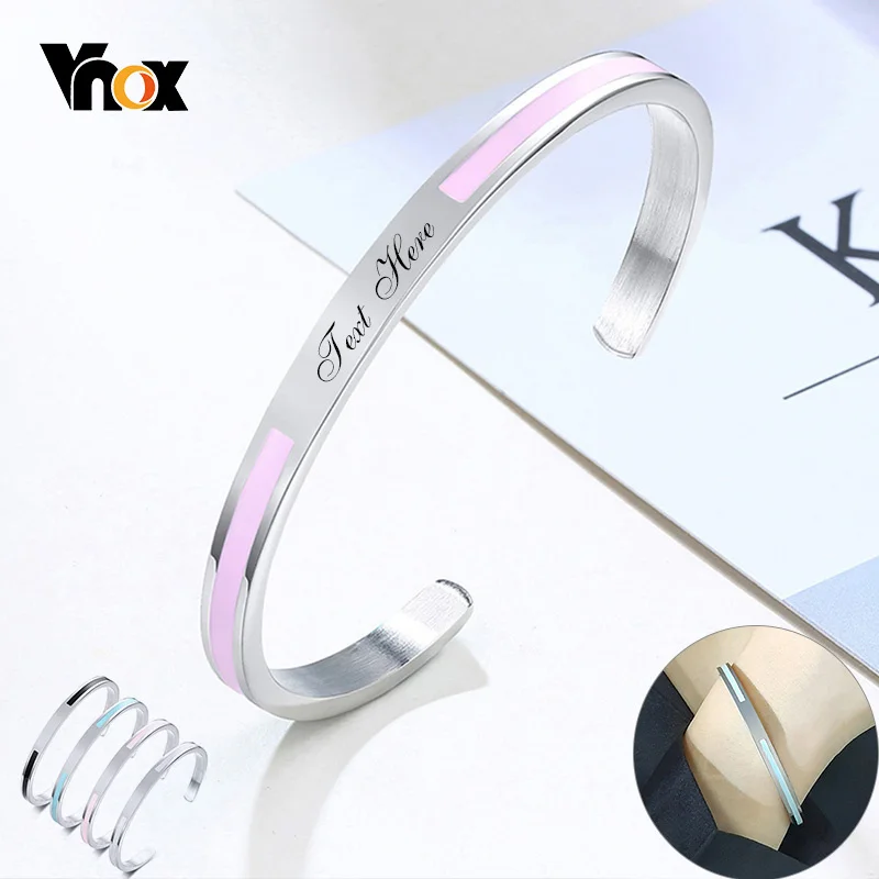Vnox элегантный настраиваемый браслет для девочек из нержавеющей стали Розовый Синий Браслет-манжета персонализированные именные слова для женщин сестер BFF подарок