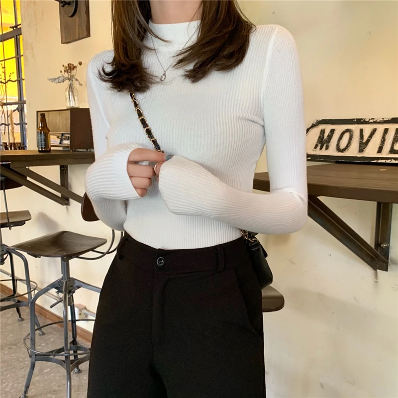 Женский трикотажный свитер с высоким воротником, пуловер с длинным рукавом, Стретч, облегающий пуловер, Осень-зима, 9 цветов
