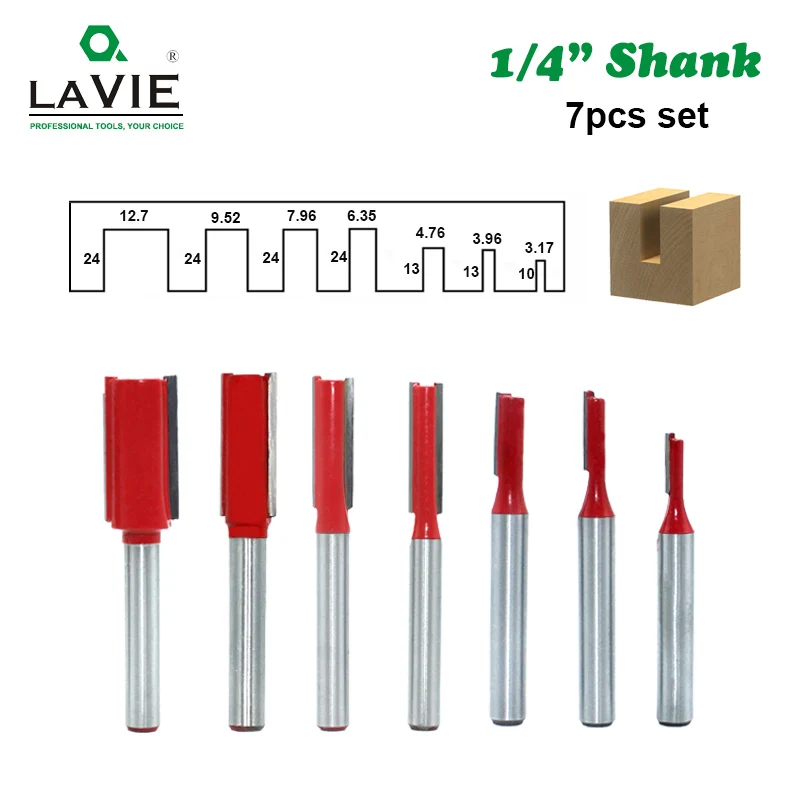 Фреза LA VIE MC01012, 7 шт., 14 дюйма, 6,35 мм, хвостовик, одно двойное лезвие, прямые биты, фрезы для резки дерева, инструмента