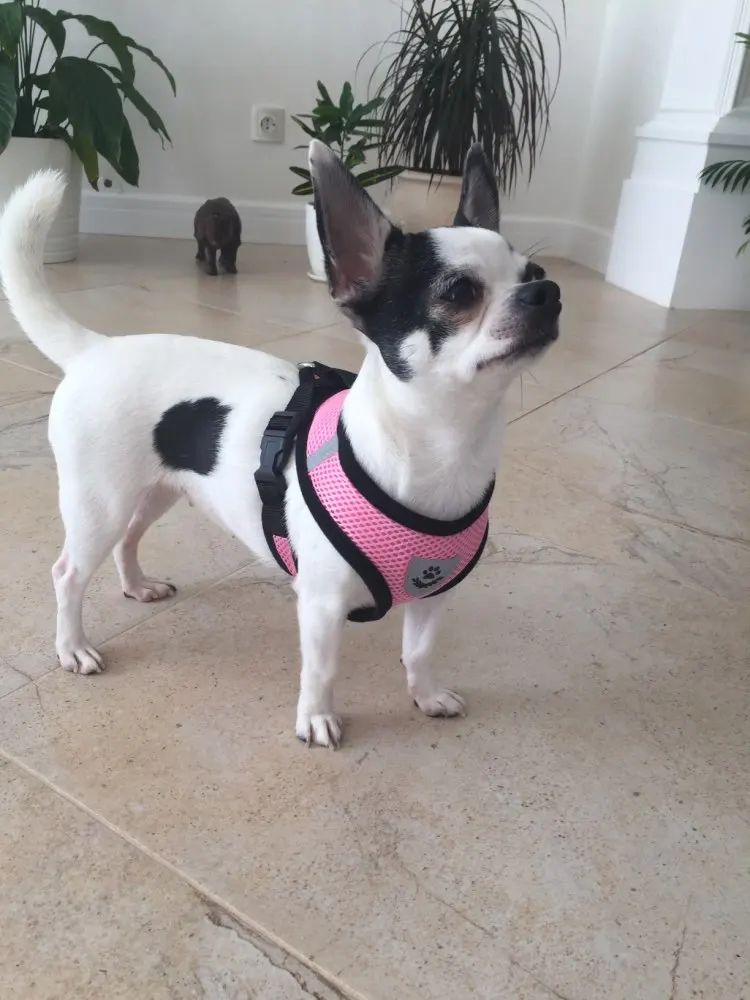 Шлейка отличная На щенка чиха 7 мес ош 20,окр гр 30 немного великовата на минимуме, но на одежду в меру свободна. То, что надо на вырост! По груди расстегивается, а по шее нет. РЕКОМЕНДУЮ!