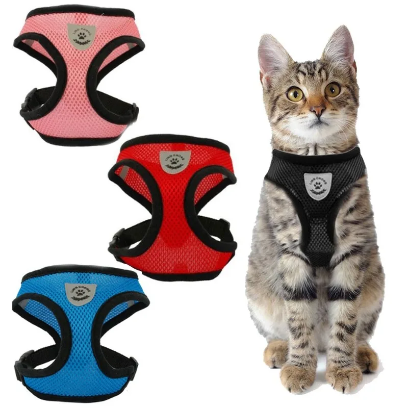 Сетчатая шлейка и поводок для кошек, воздухопроницаемая Светоотражающая шлейка для котят, маленьких собак и щенков, французская искусственная Мопса