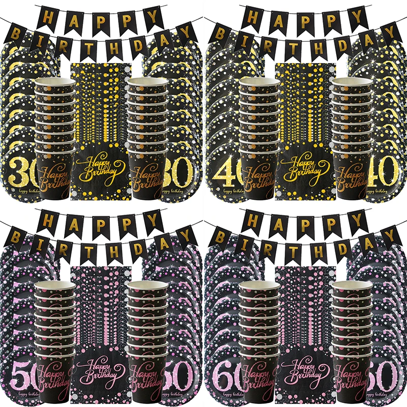 Набор одноразовой бумажной посуды для взрослых, набор из 49 предметов для празднования дня рождения, 30, 30, 30