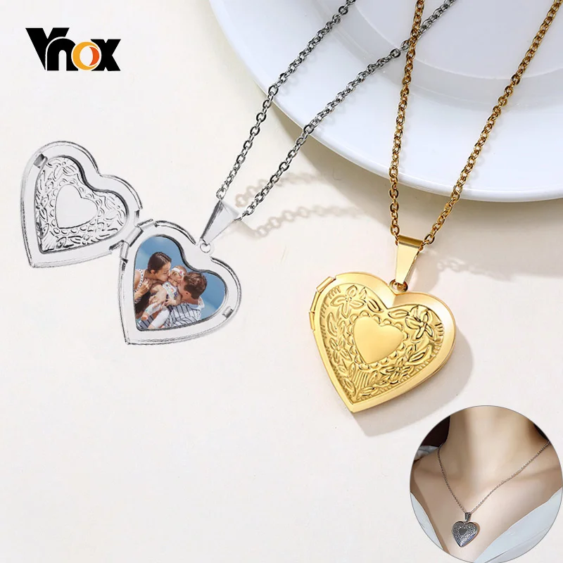 Настраиваемая металлическая фоторамка Vnox в форме сердца из нержавеющей стали, семейная любовь, подарок, ювелирные изделия