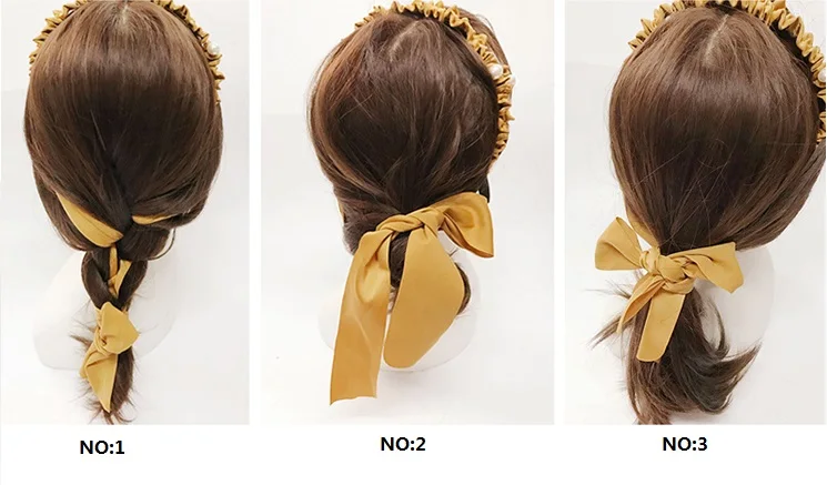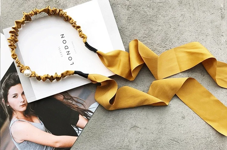 Модные Длинные ленты, плиссированные повязки на голову, однотонные ...
