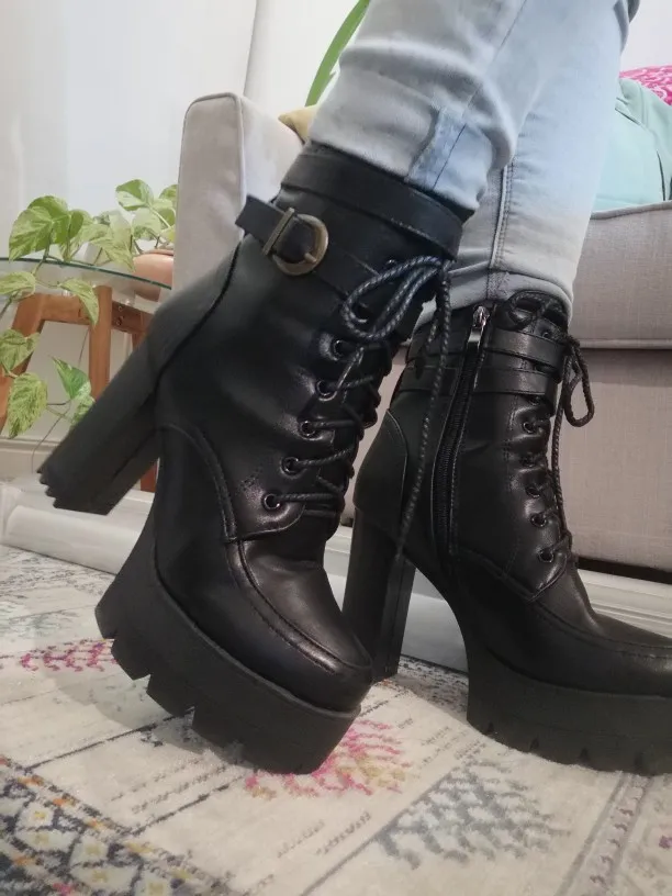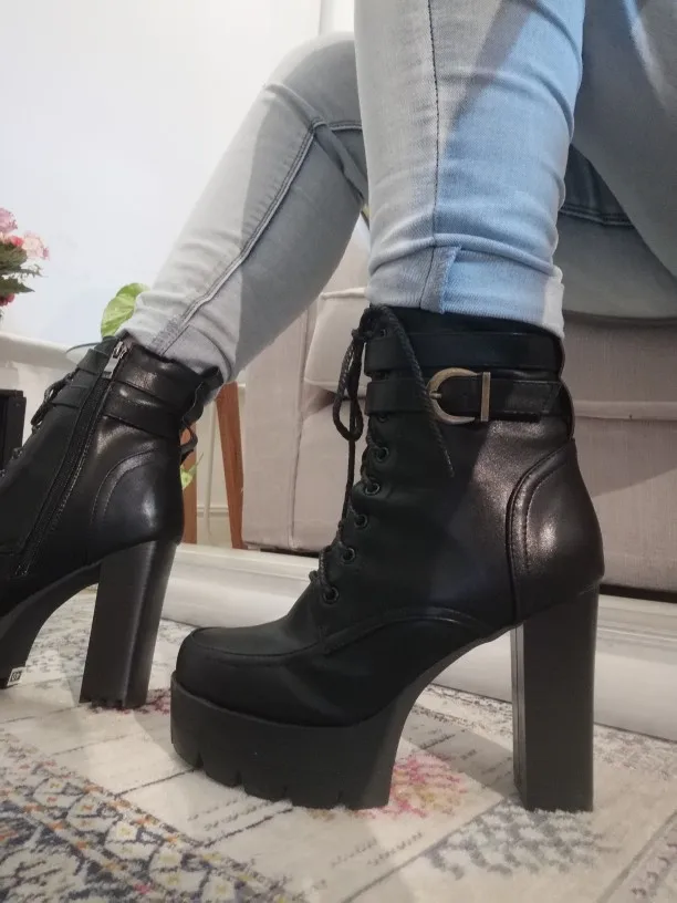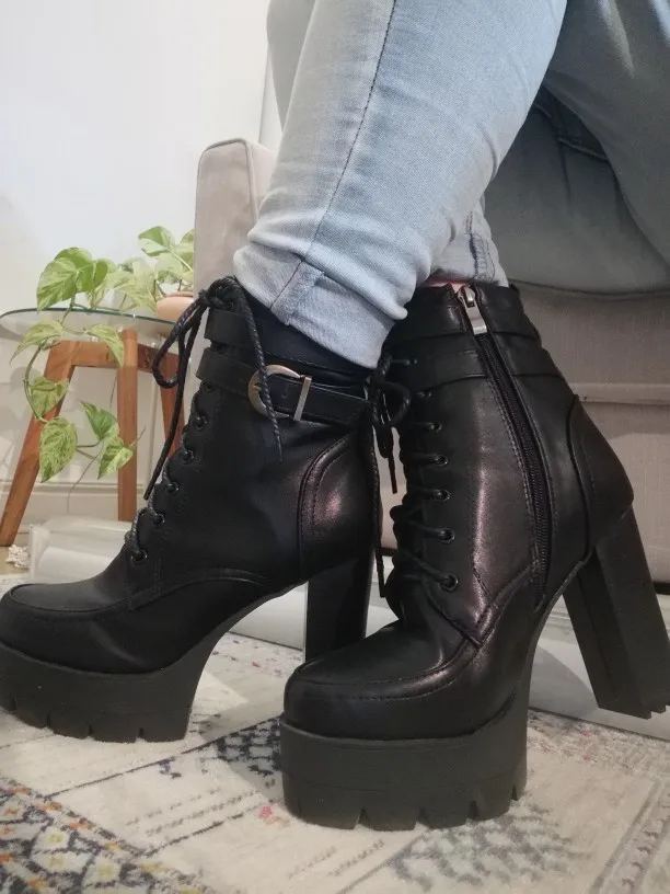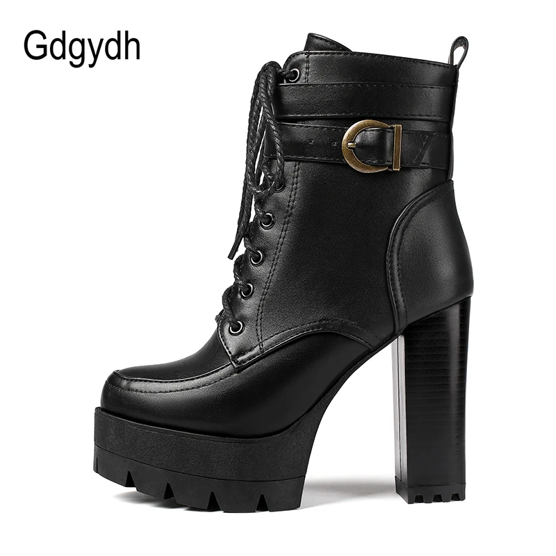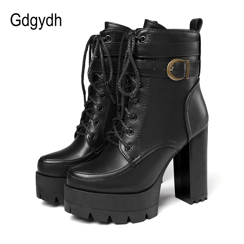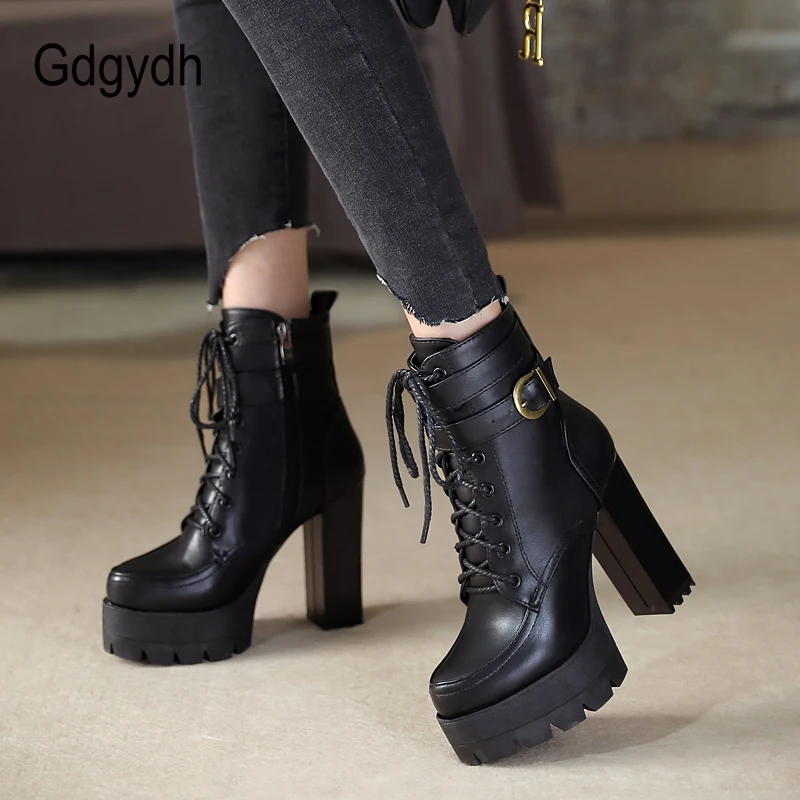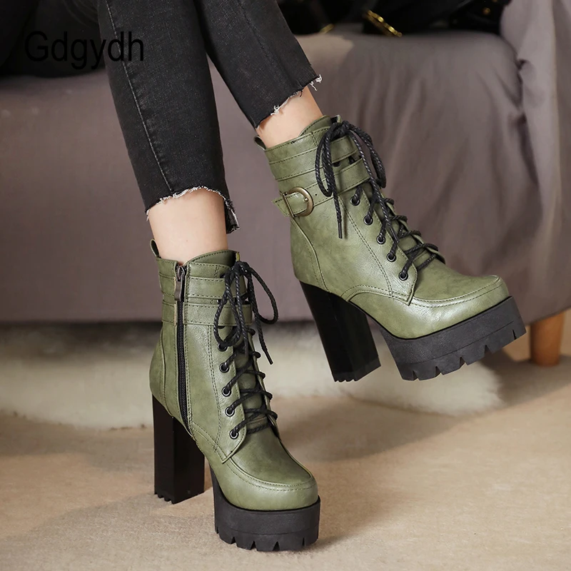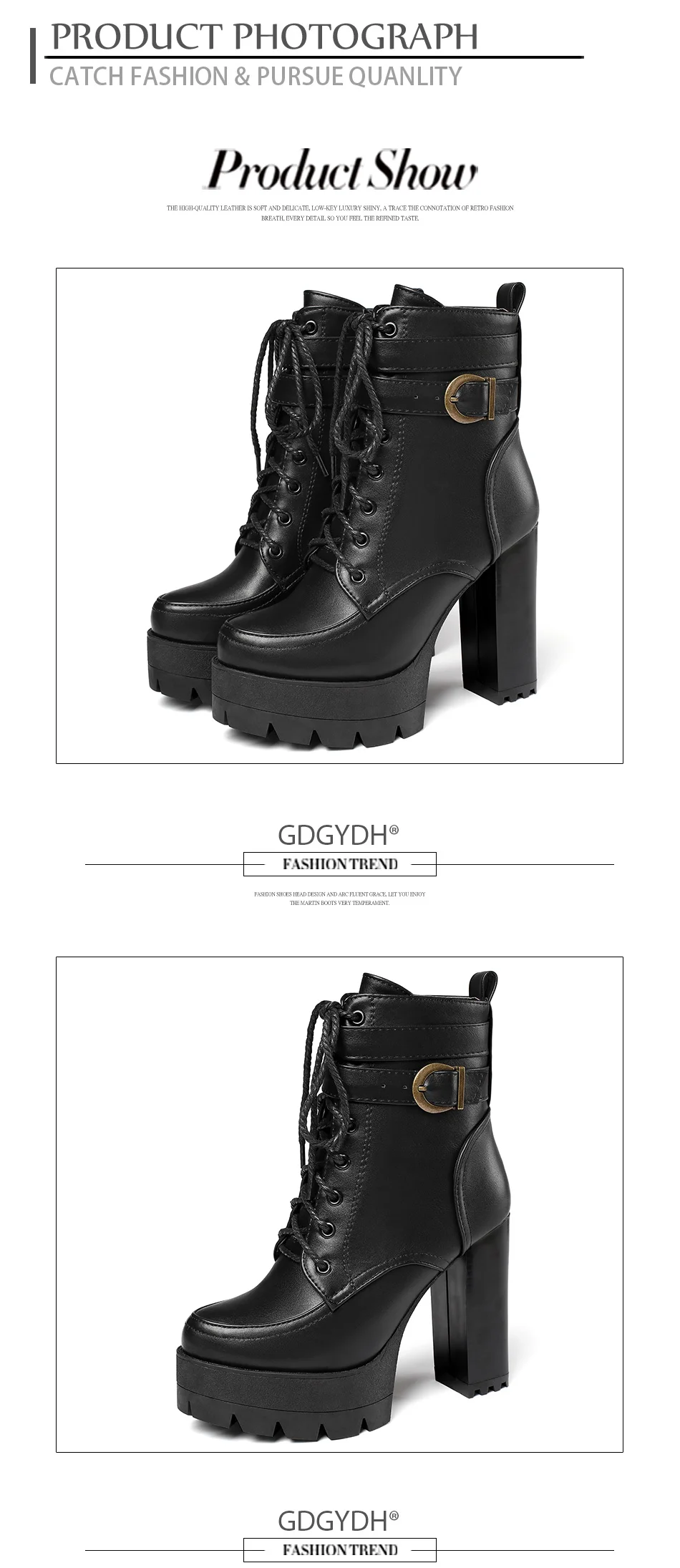 GdgydhЛидер продаж 2022 года; Женская обувь в русском стиле; Женские ботильоны на толстой платформе и высоком каблуке; Ботинки на молнии для мотоцикла с круглым носком на шнуровке