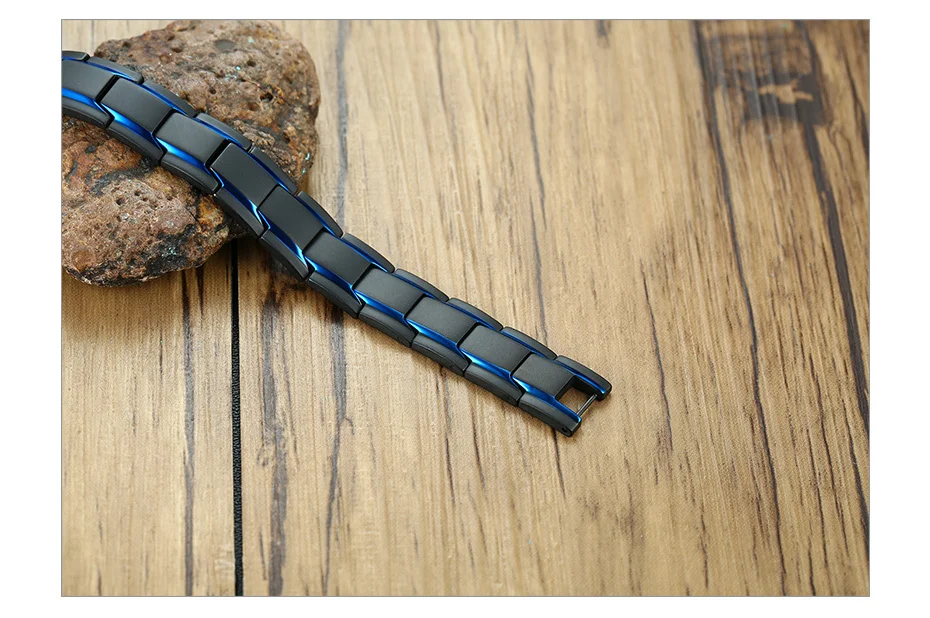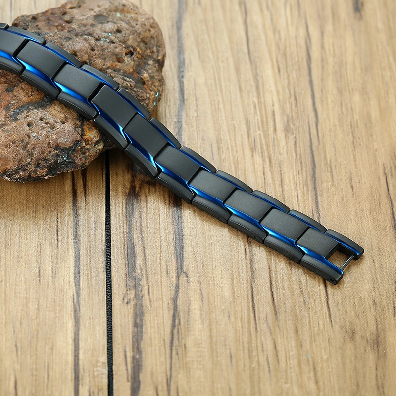 Мужской синий и черный браслет из нержавеющей стали с двойным покры...
