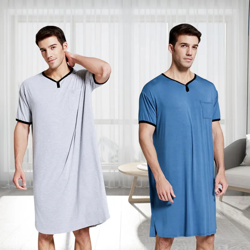 2020 Мужская одежда для сна длинная ночная рубашка с коротким рукав...