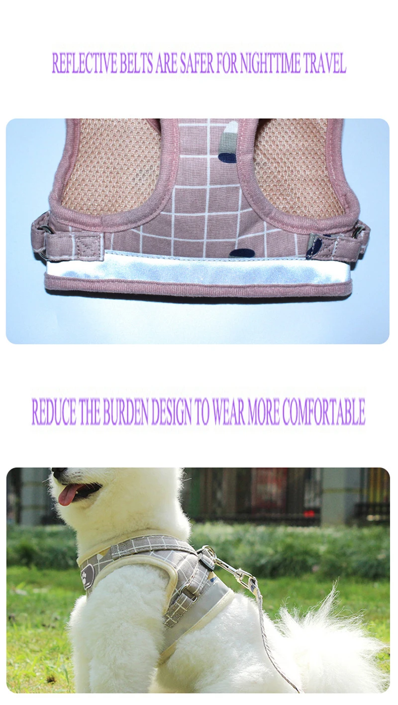 Светоотражающая веревка для домашних питомцев, нейлоновая сетка в клетку, квадратный бюстгальтер, одежда для щенков