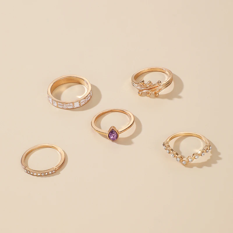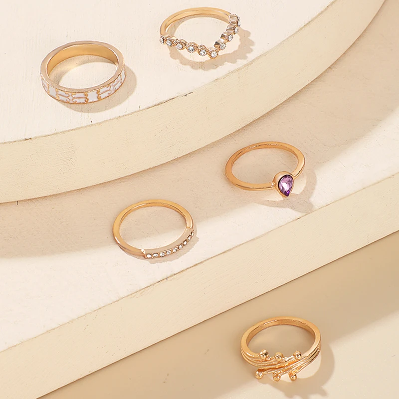 Docona богемные фиолетовые белые Стразы Кольца для женщин панк комплект колец на фалангу готические ювелирные изделия Anillos аксессуары 5 шт.компл. 15844