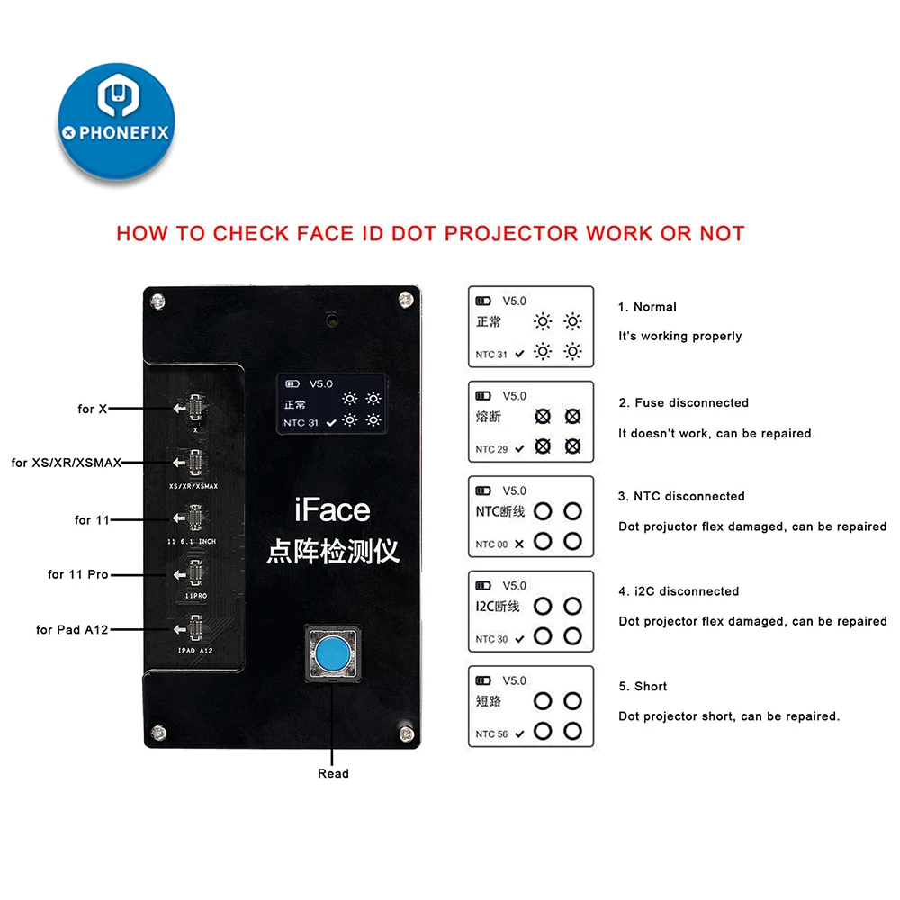 Luban iFace инструмент, точечный матричный тестер для iPhone X/XS/Xr/Xsmax/11Pro Max, тестирование лица, Ремонт для iPAD A12, один клик для обнаружения точечного проектора