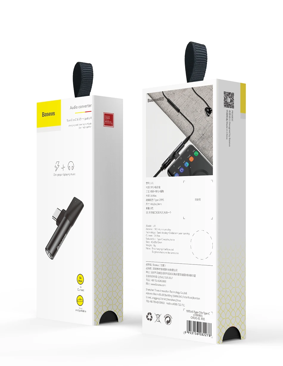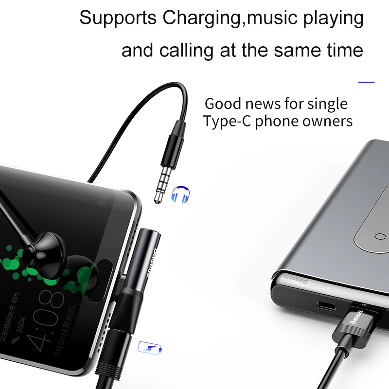 Аудиоадаптер Baseus L41 с Usb C на 3,5 мм, аудиоадаптер с разъемом Aux, аудиоразветвитель с Type-C, зарядный адаптер для Xiaomi Mi 9, 8, Huawei Mate 30 Pro, P20