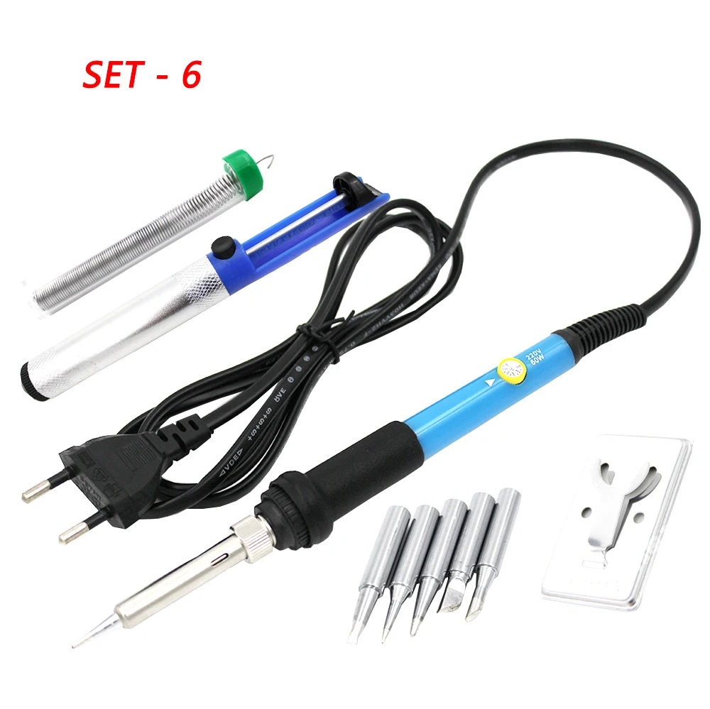 100% новый и высокое качество! 1 * паяльник с регулировкой температуры. 5 * паяльные железные наконечники 1 * железная подставка 1 * паяльная проволока 1 * припой 1 * канифоль