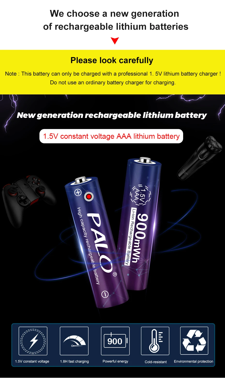 PALO 100% емкость 1,5 В AAA литий-ионная батарея 3A 1,5 В 900mWh литий-ионная аккумуляторная батарея батареи для термометра