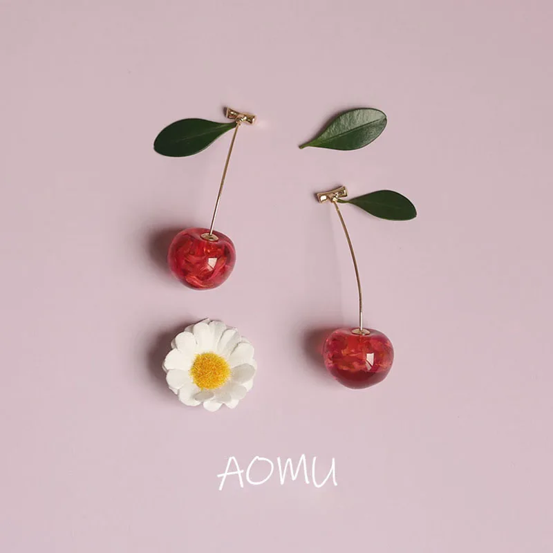 Женские Висячие серьги AOMU в форме фруктов, милые японские корейские серьги-подвески в форме вишни для девочек, Подарочная бижутерия, 2020