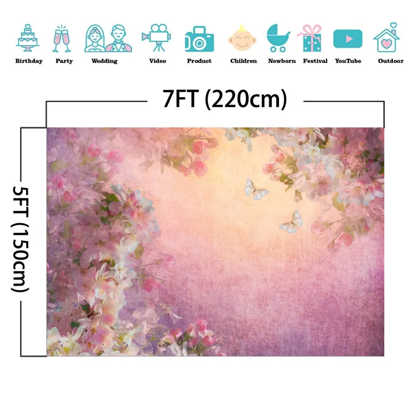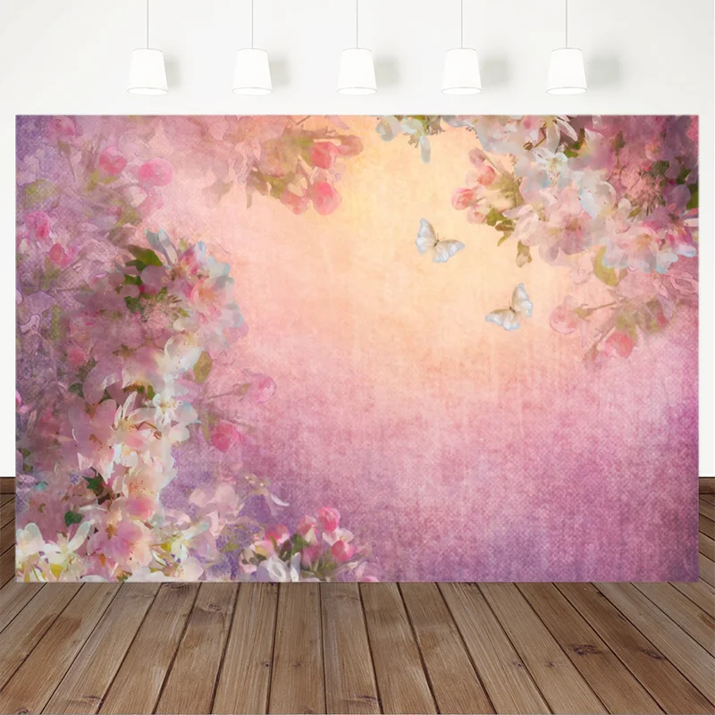 Фон для фотосъемки с изображением цветов, абстрактных бабочек и цветов
