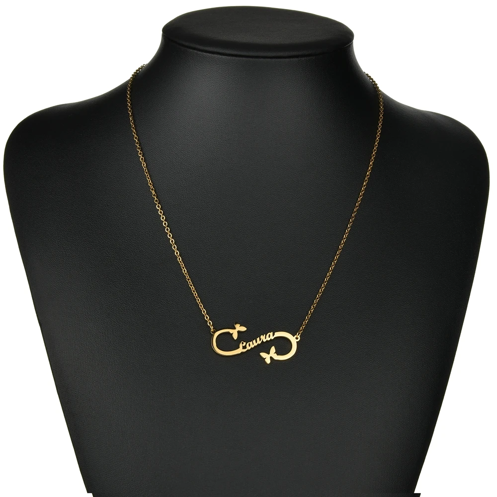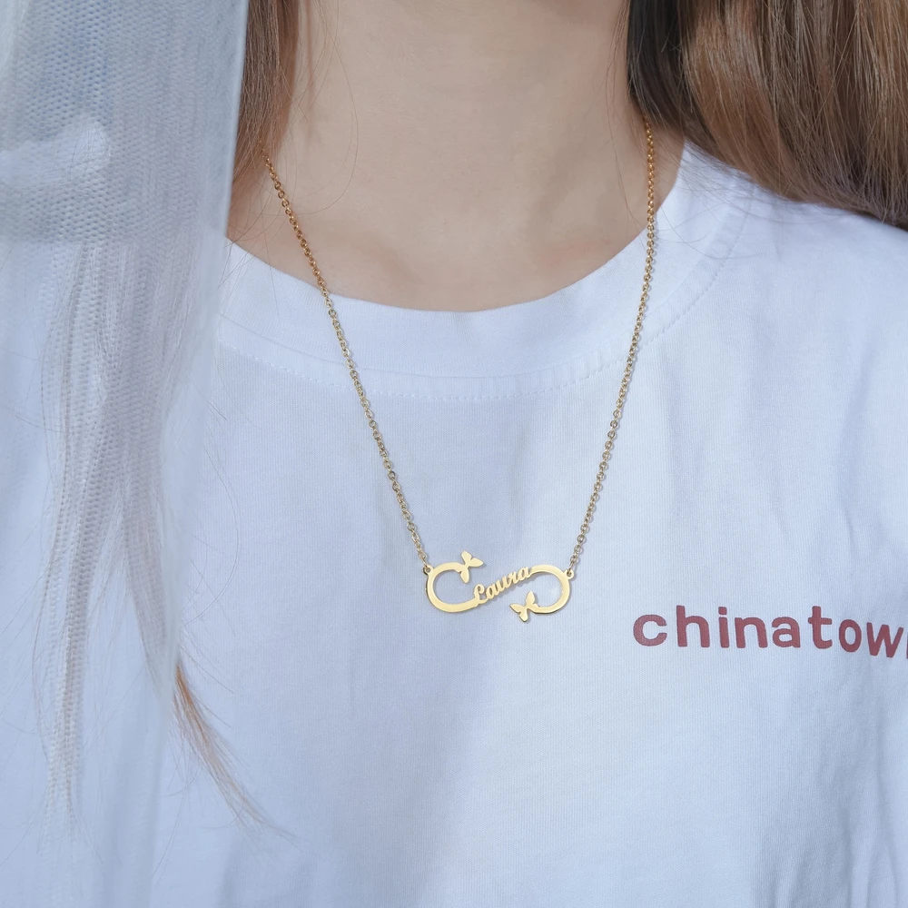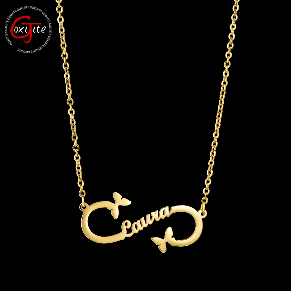 Название: Goxijite 2020 Новое индивидуальное именное ожерелье для женщин, ожерелье из нержавеющей стали с бабочкой и именем бесконечности для любимого подарка