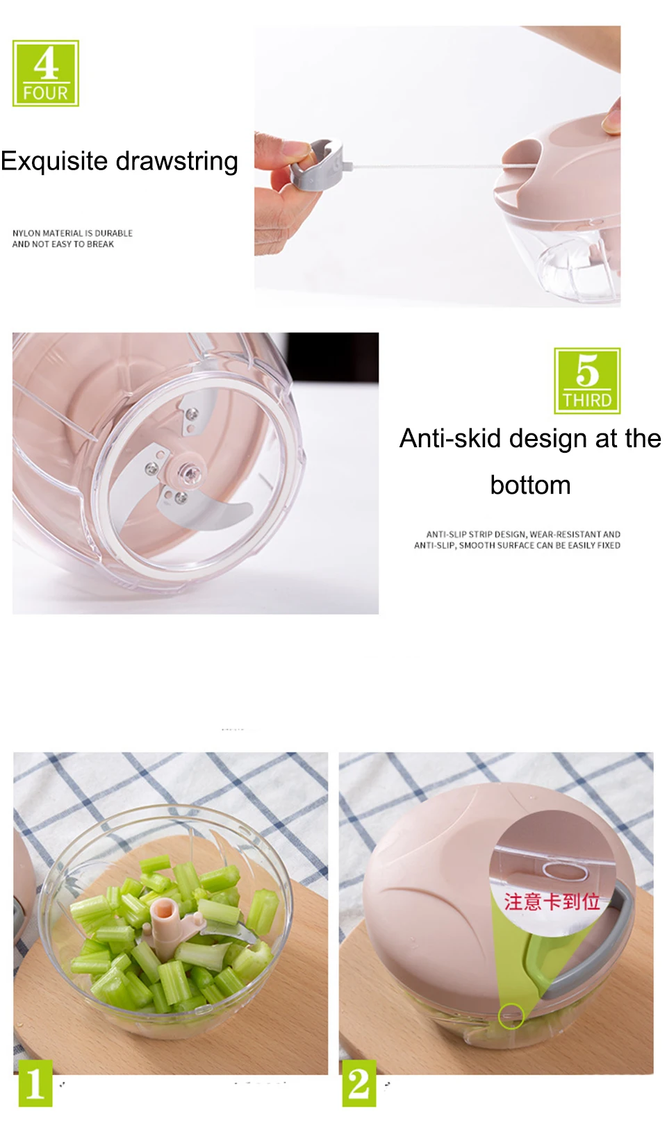 2. Легко моется: лезвия, миски для хранения и крышки кастрюль можно мыть в верхней стойке посудомоечной машины, компоненты размещаются отдельно, легко моются.