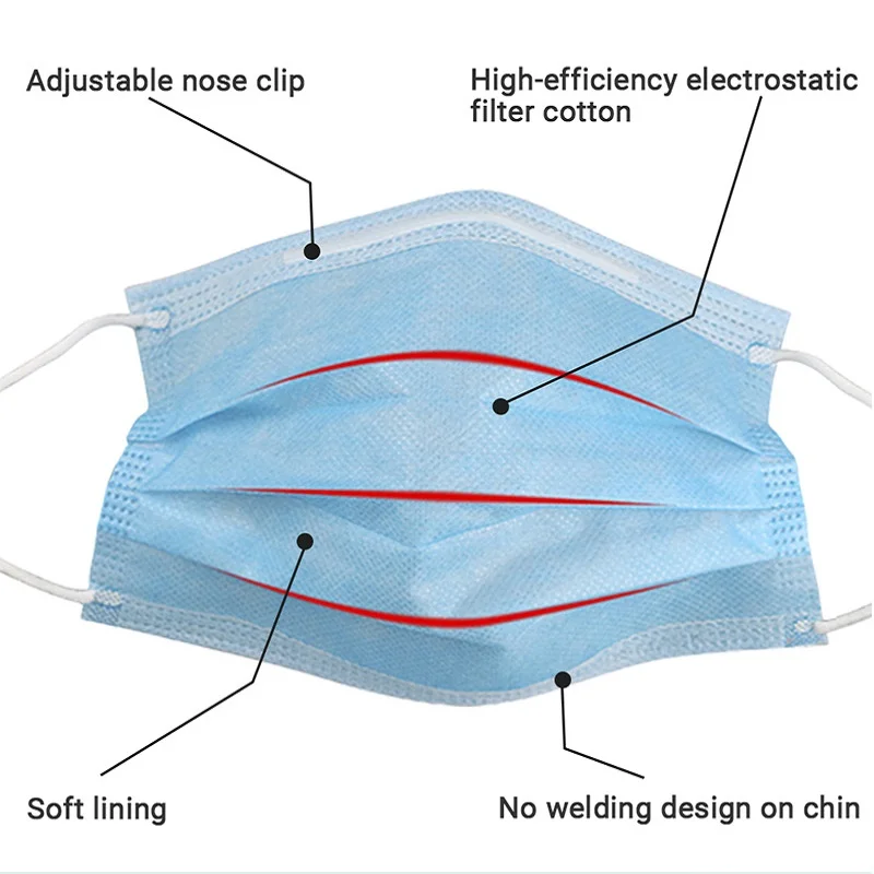 Одноразовые медицинские маски, нетканые маски для лица с 3-слойным ...