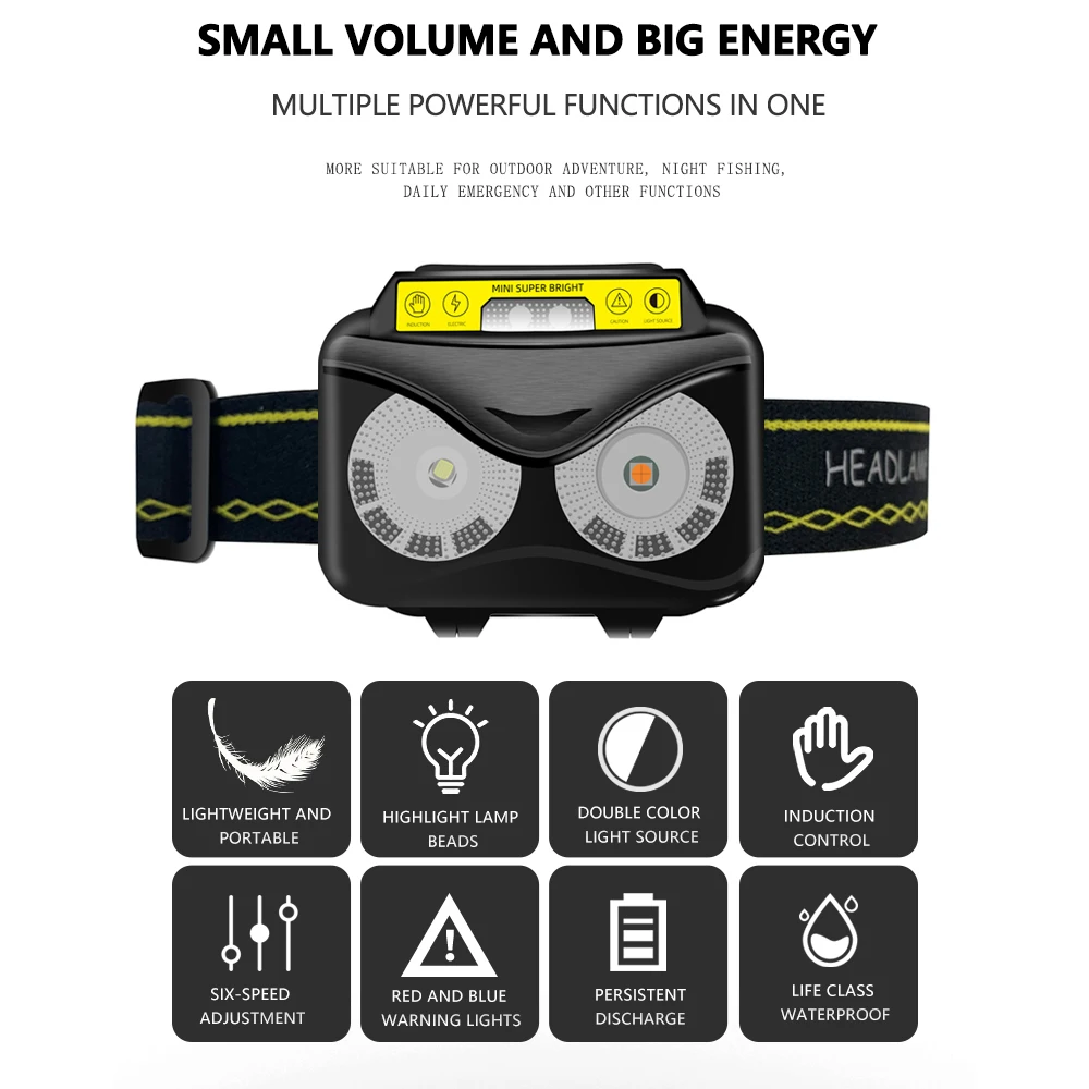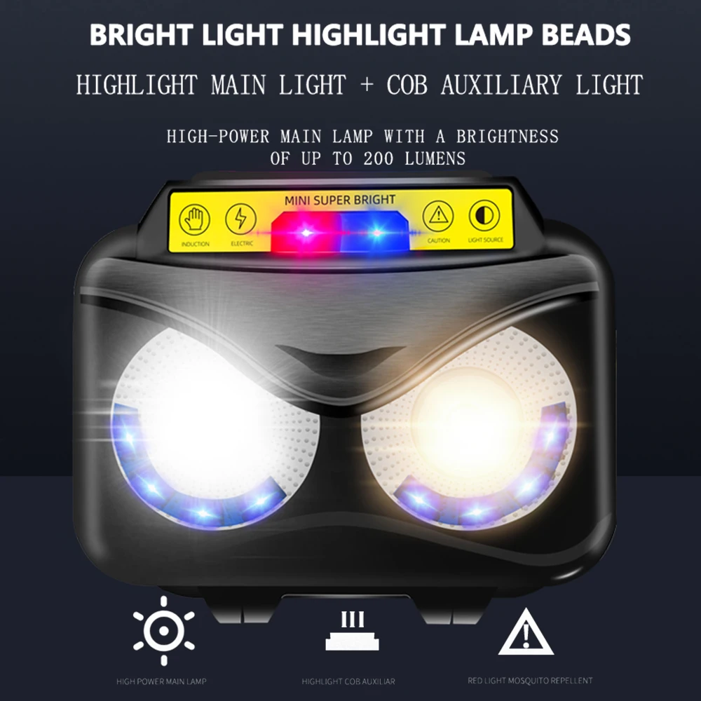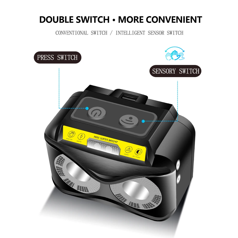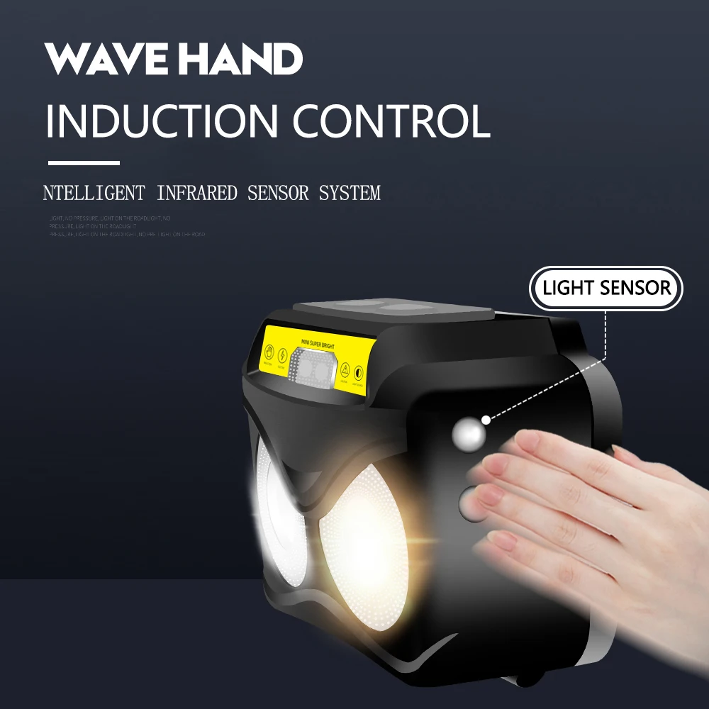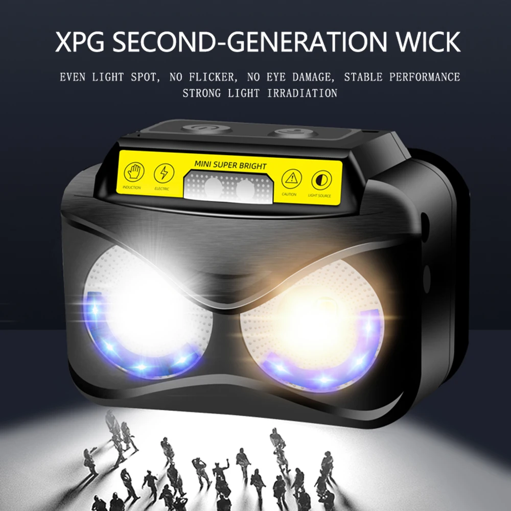 Налобный фонарь BORUiT K190 XPG, светодиодный с датчиком движения, 6 режимов, перезаряжаемый
