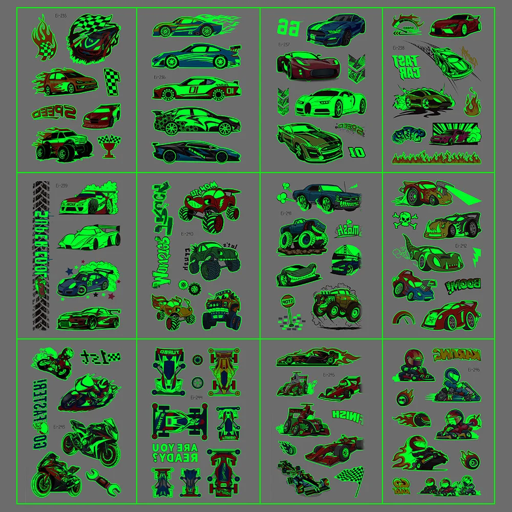Светящиеся крутые гоночные татуировки, наклейки, водонепроницаемые,...