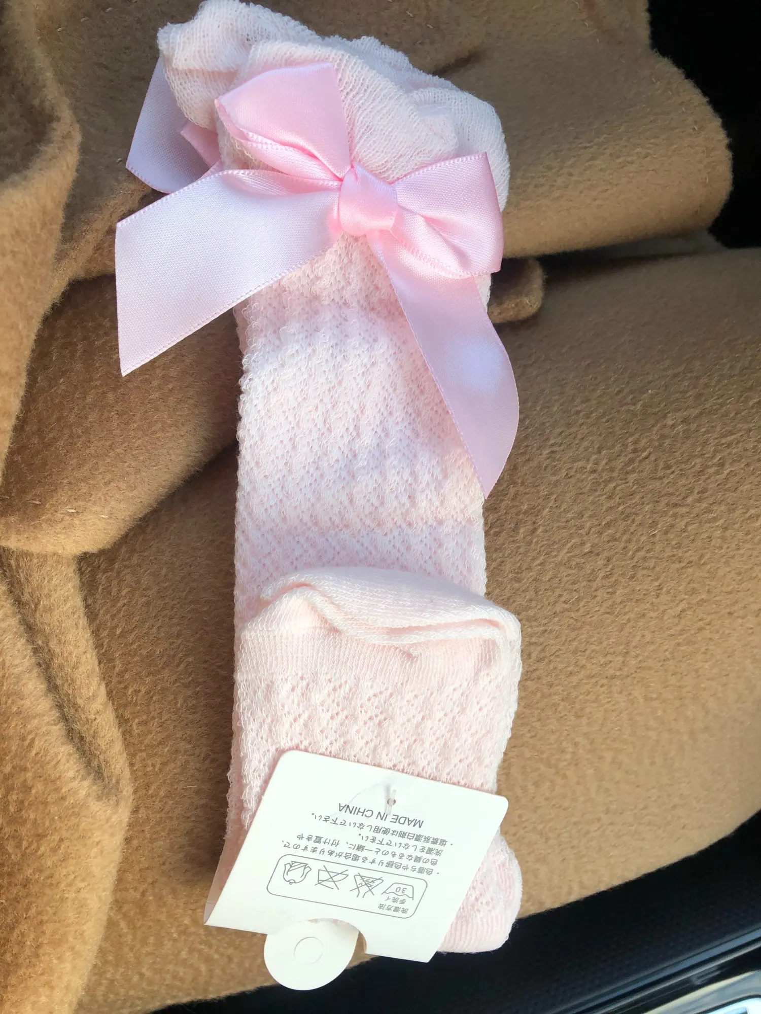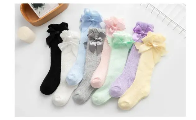 Детские ажурные носки до колена с бантом в Королевском Стиле для девочек, носки без пятки с бантом для малышей, Детские ажурные носки От 0 до 4 лет