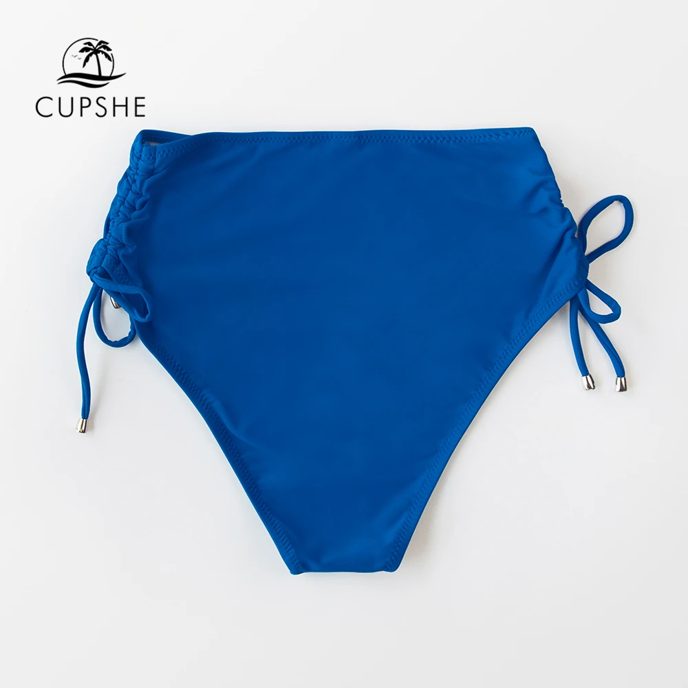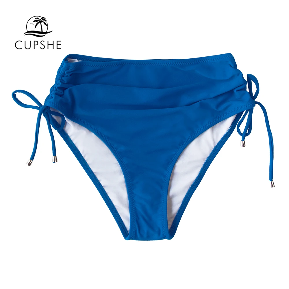 Трусы-плавки CUPSHE женские синие с рюшами по бокам, пикантные однотонные плавки с завышенной талией, раздельные плавки для купания, 2021